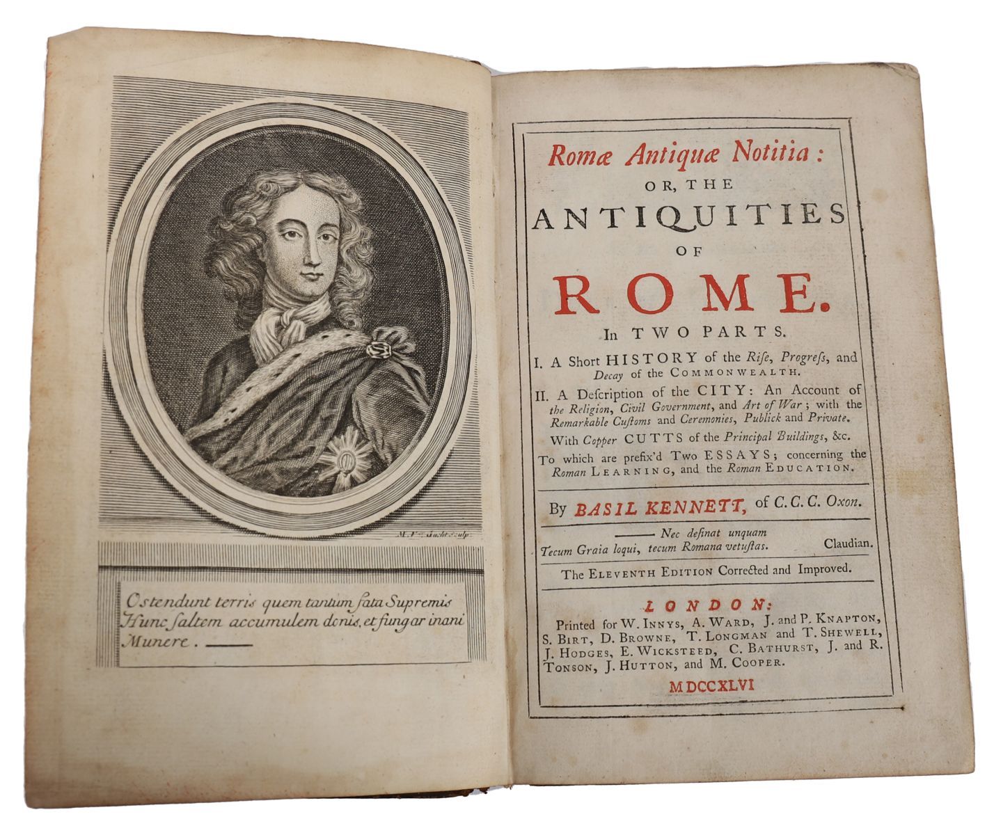Lot 1023 BASIL KENNETT — ROME ANTIQUA NOTITIA: OR, THE ANTIQUITIES OF ROME — LONDON, 1746 — 11TH EDITION