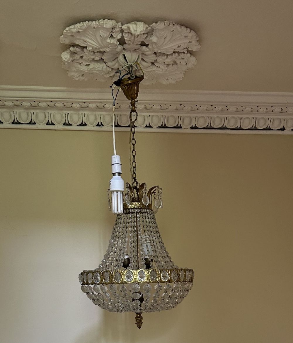 Lot 469 BASKET FORM CHANDELIER IN CRYSTAL AND BRASS