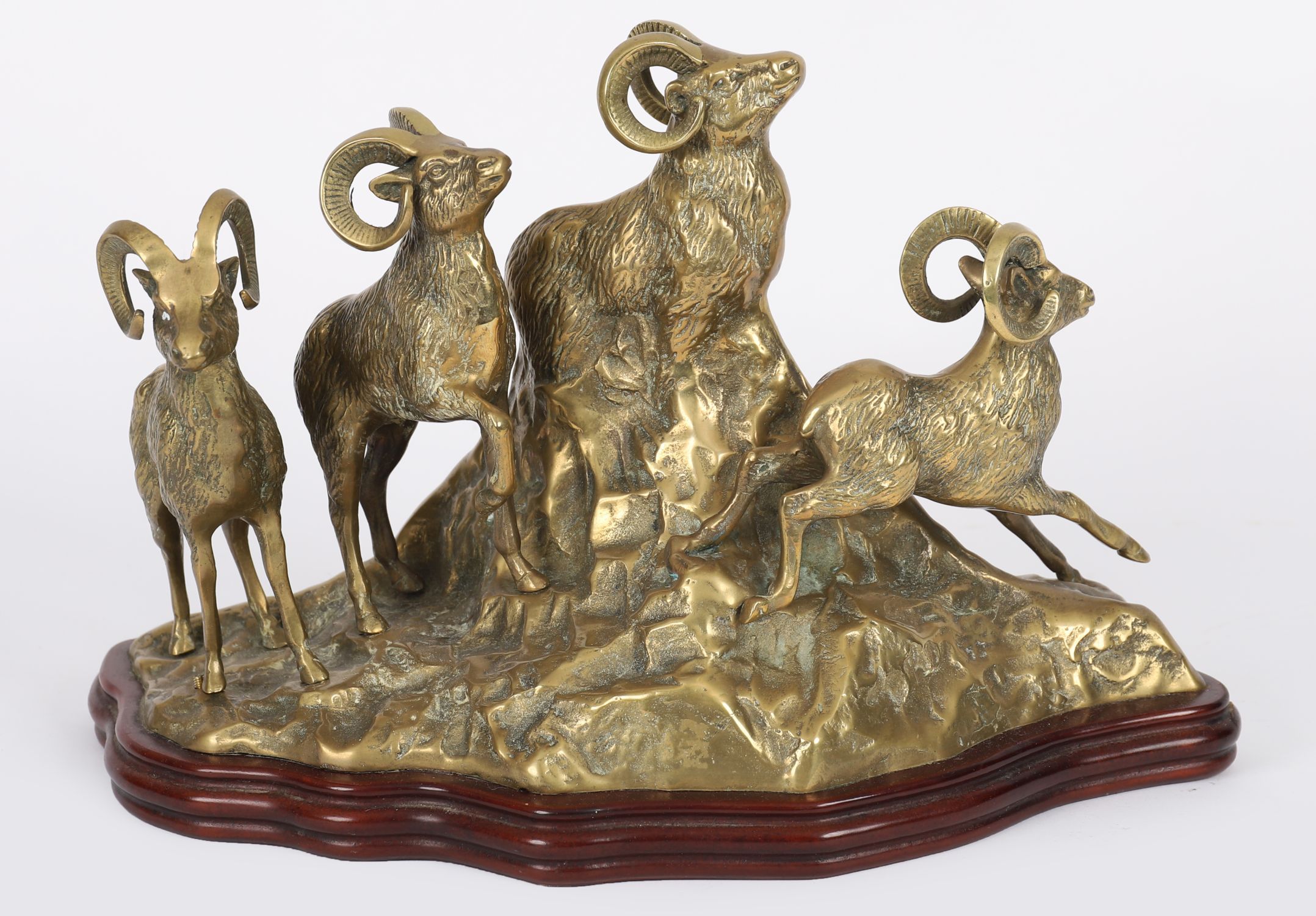 Lot 1302 BRASS SCULPTURE GROUP OF MOUNTAIN RAMS