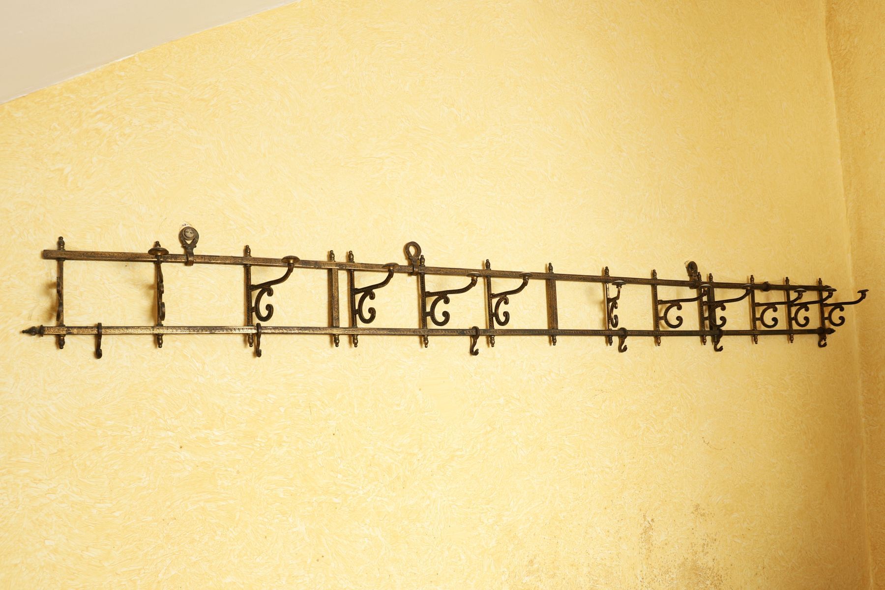 Lot 256 BRASS WALL-MOUNTED HANGING HAT AND COAT RACK