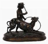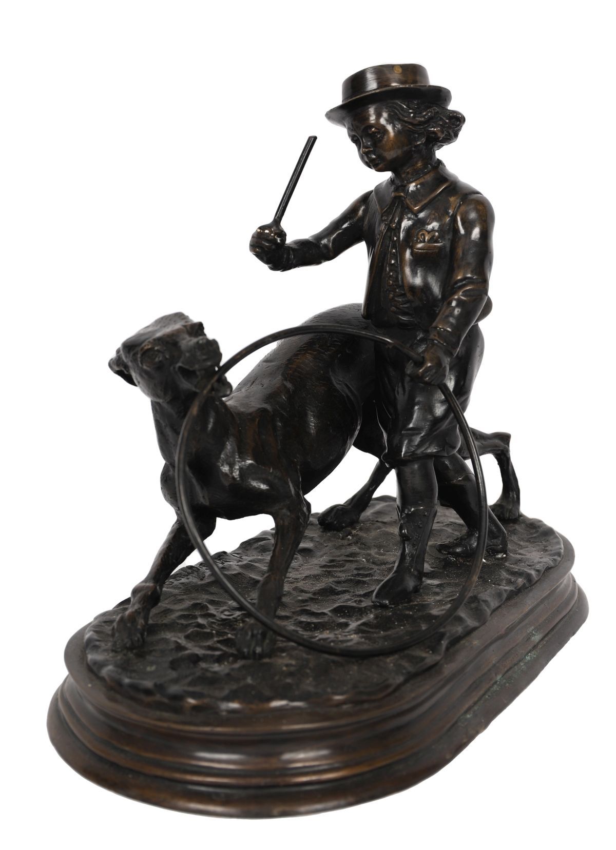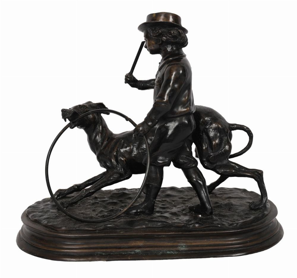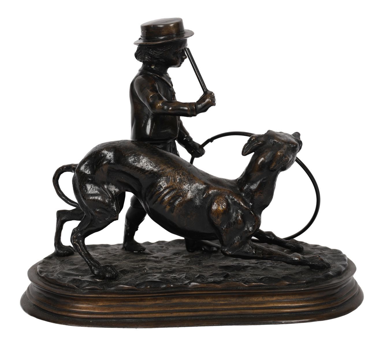 Lot 946 BRONZE SCULPTURE GROUP, YOUNG BOY WITH WHIPPET, SIGNED JULES MOIGNIEZ