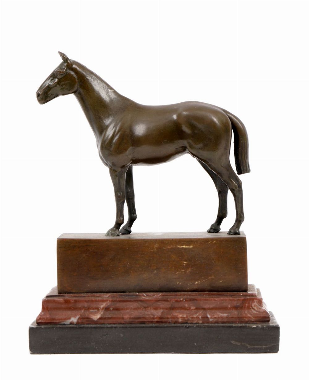 Lot 1076 BRONZE SCULPTURE OF A RACEHORSE ON ROUGE MARBLE BASE
