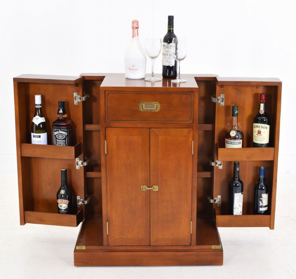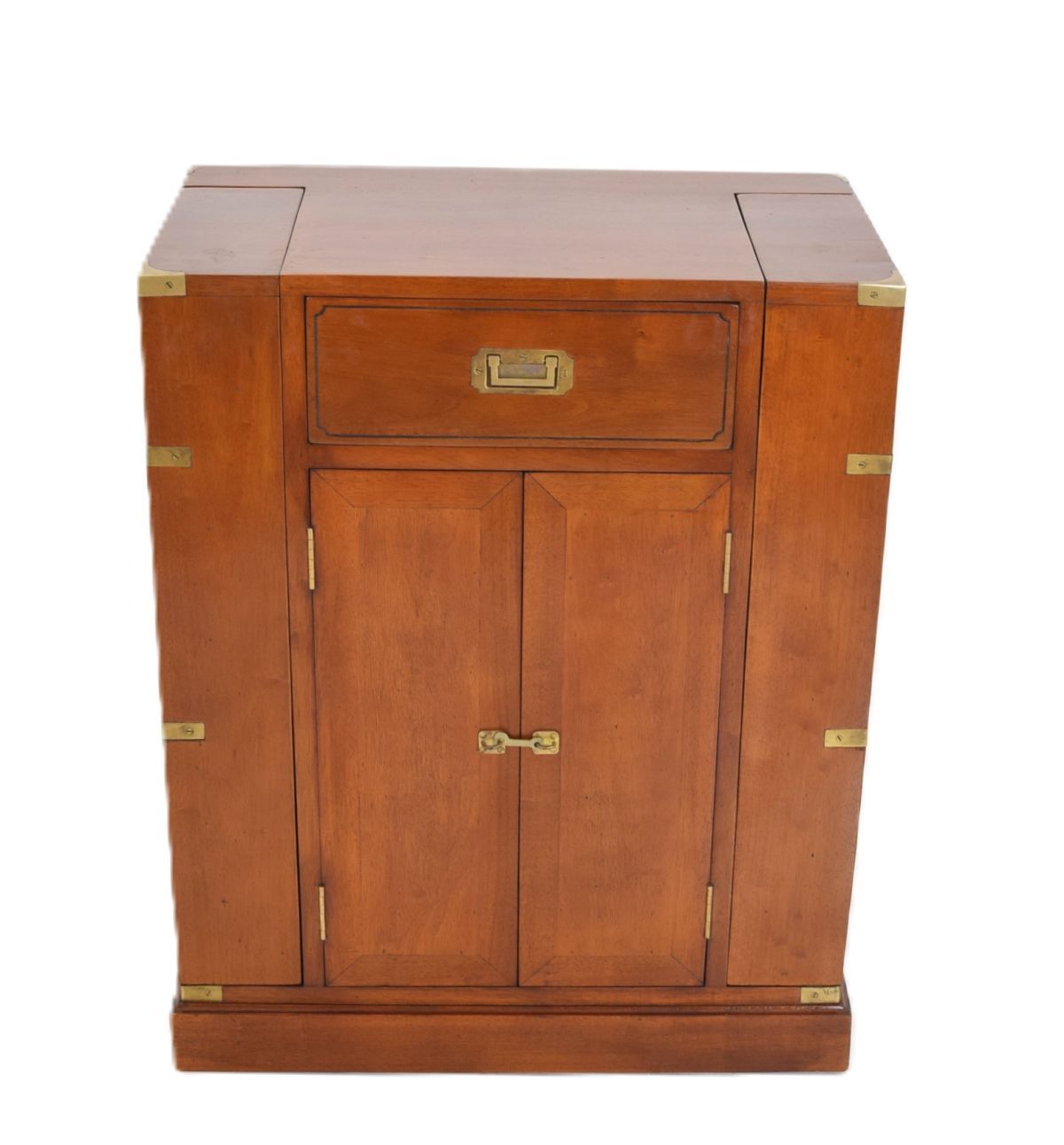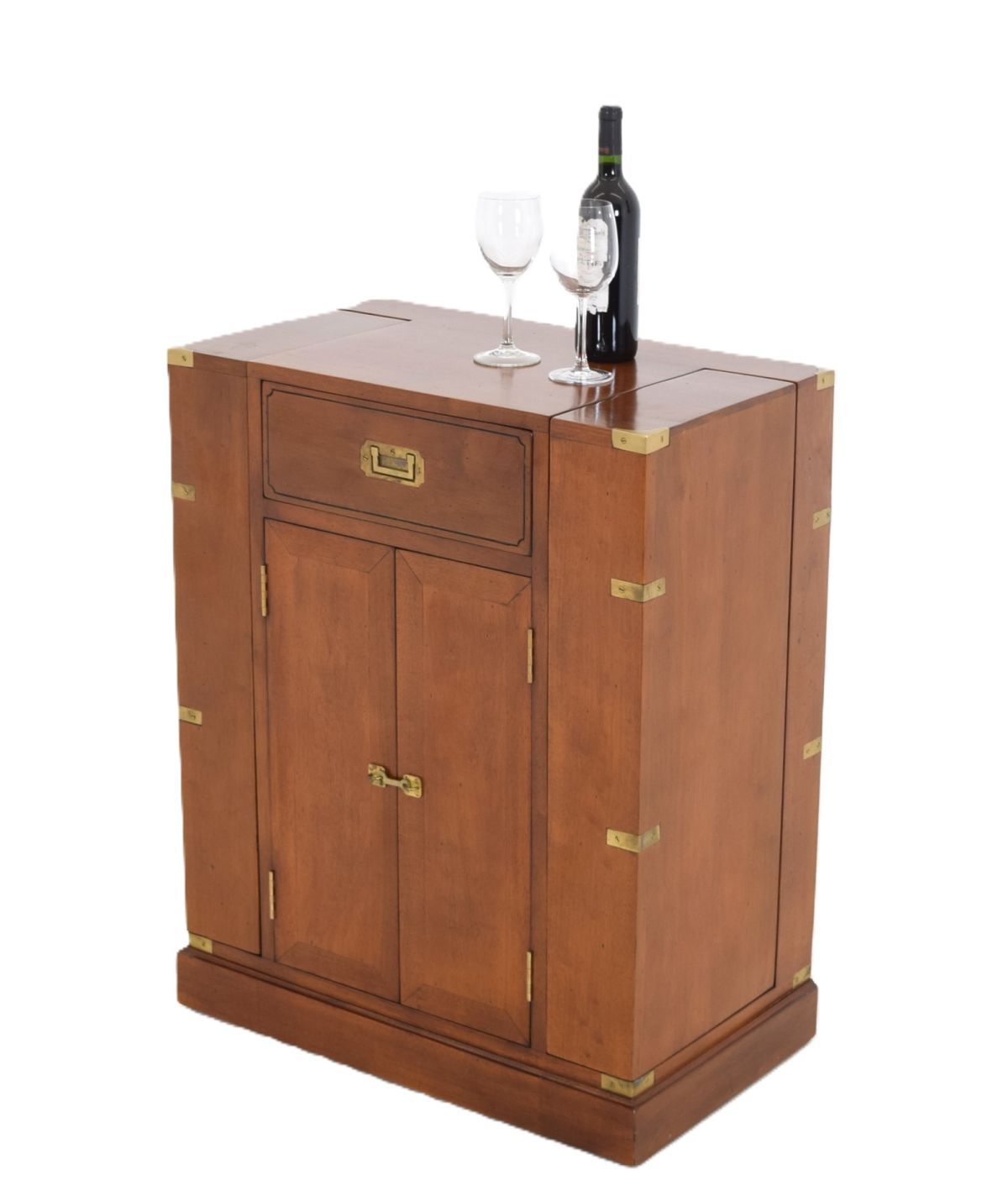 Lot 96 CAMPAIGN STYLE FRUITWOOD AND BRASS-BOUND DRINK'S CABINET