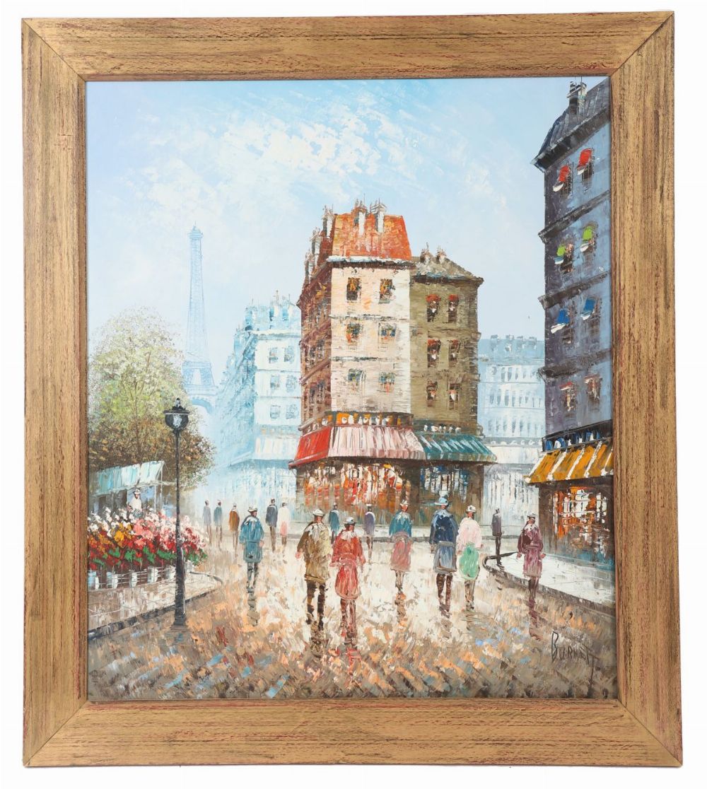 The Streets of Paris. Oil on Canvas. Signed Lower Right. Framed