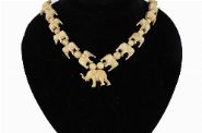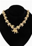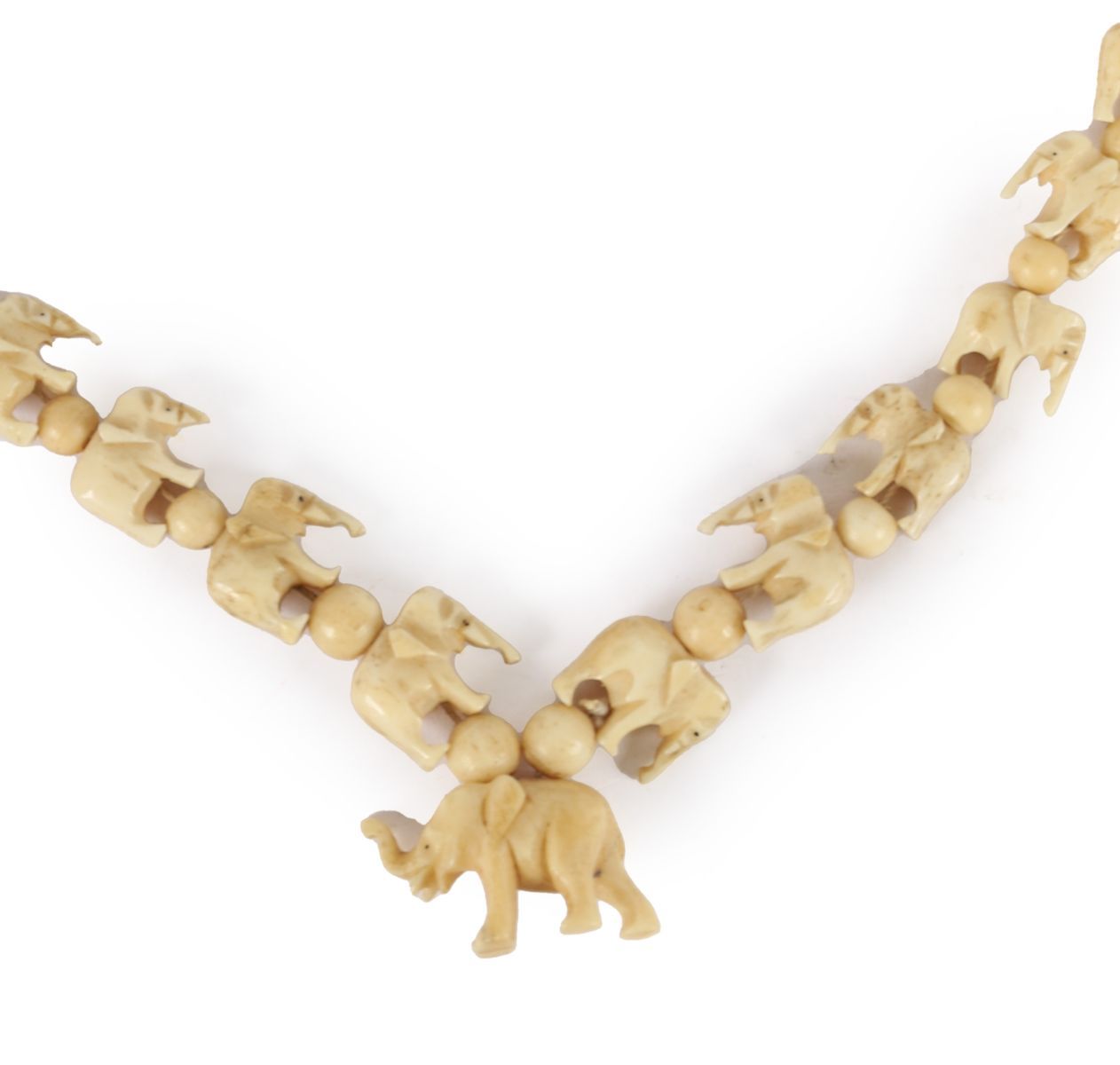 featuring a series of intricately carved miniature elephant figures interspersed with beads.