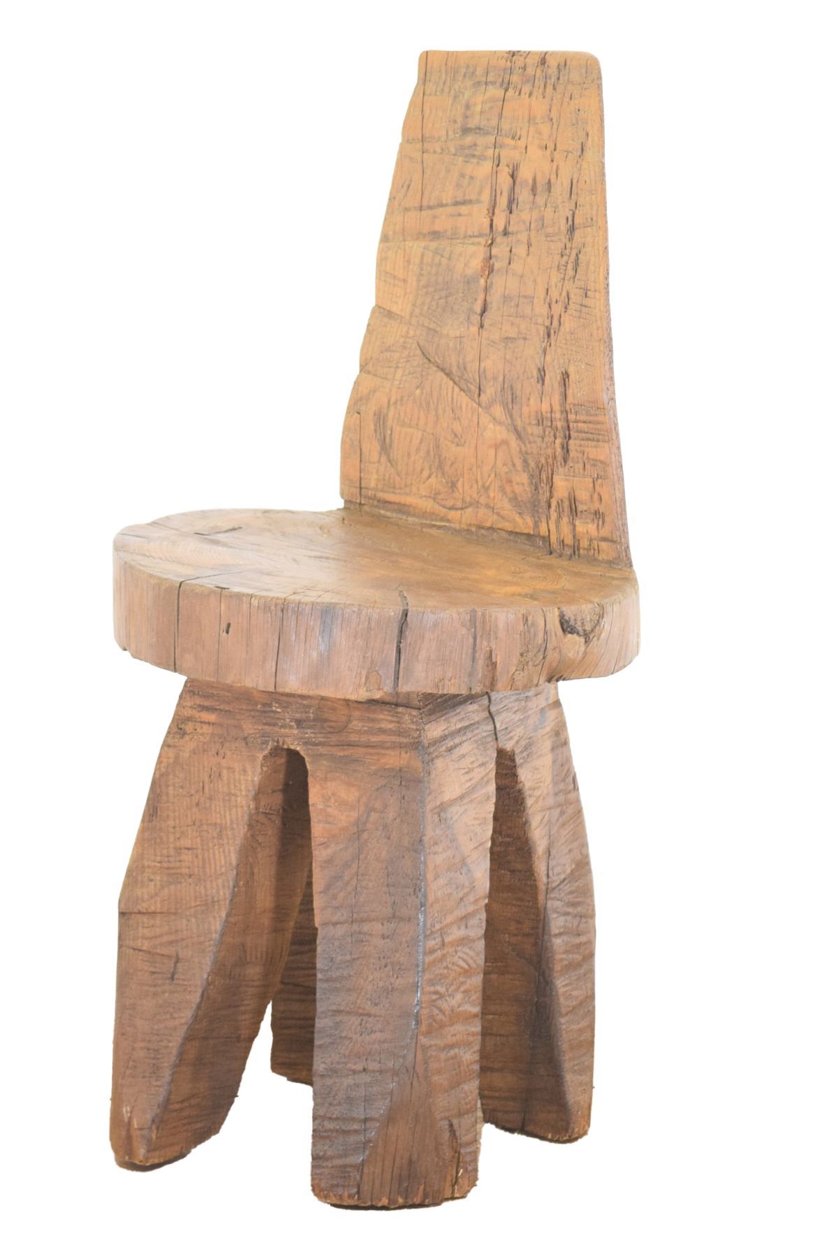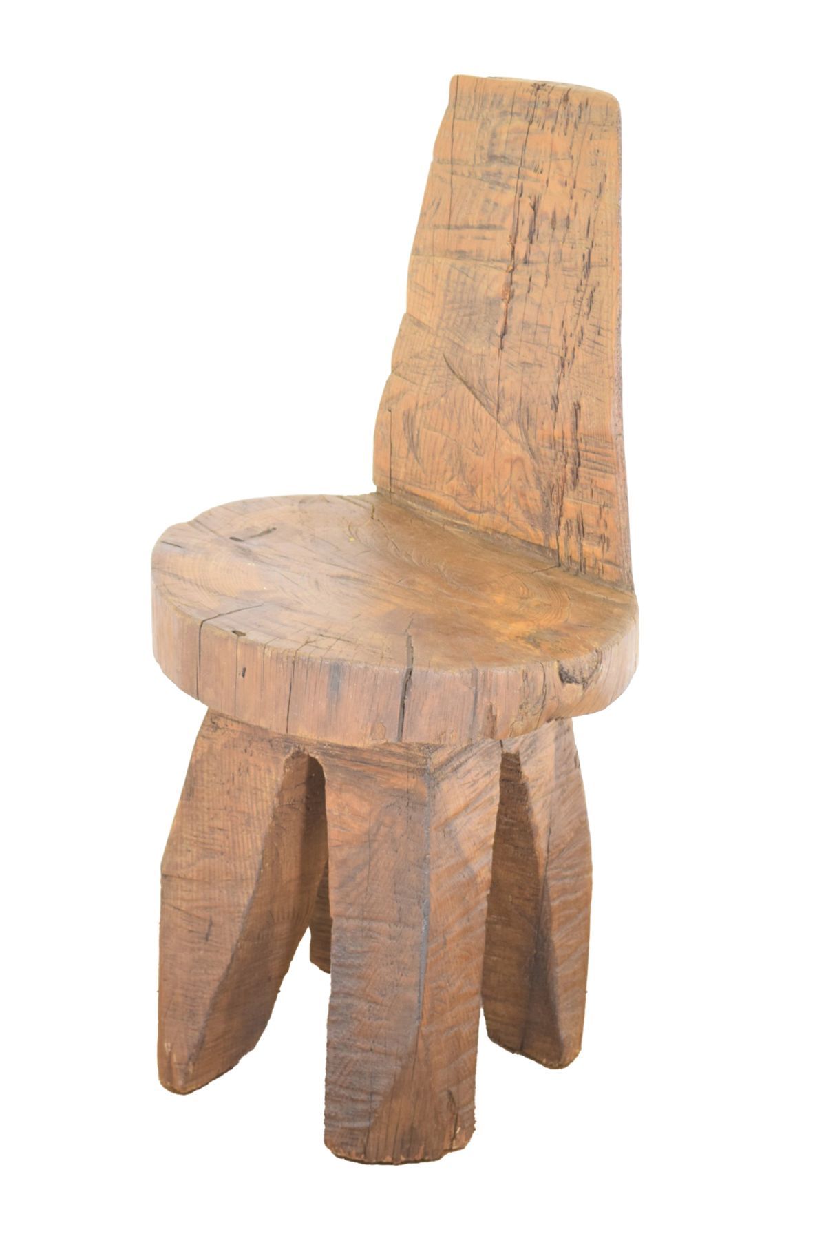 formed from a single piece of wood and raised on four square legs; a remarkable example of primitive carving skill.