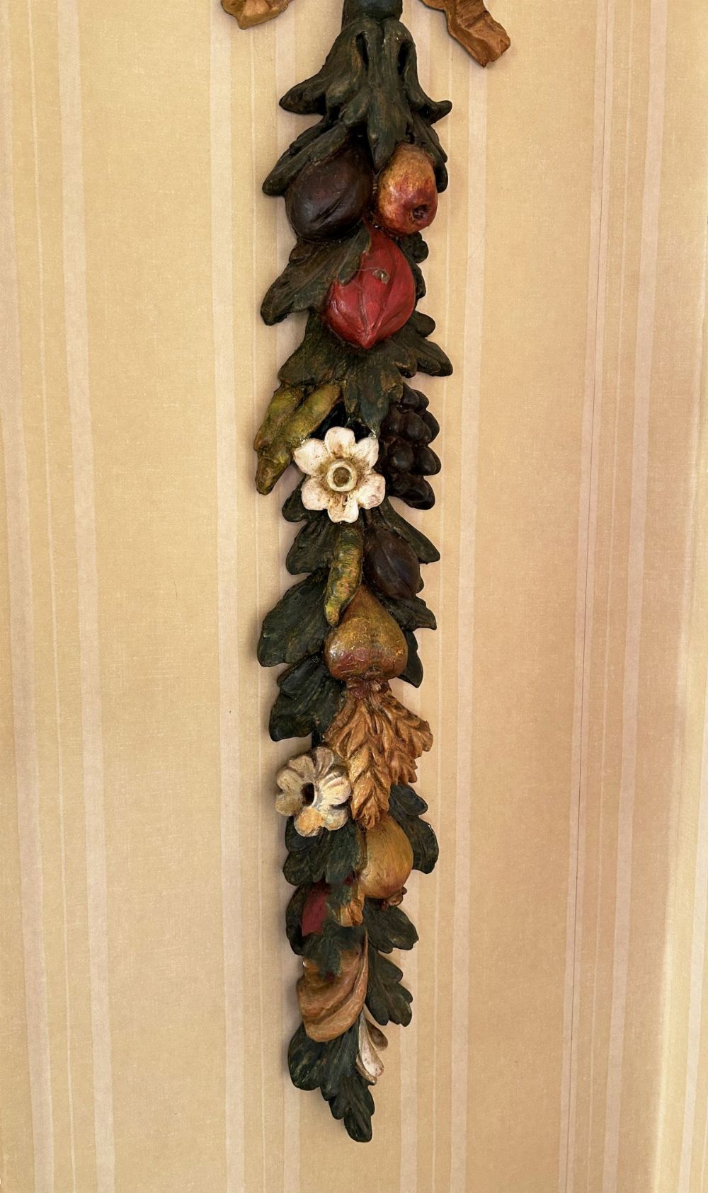 Lot 112 CARVED WOOD AND POLYCHROME WALL PENDANT