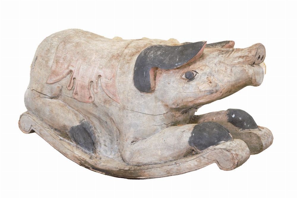 whimsically shaped in the form of a pig, this decorative miniature is finely painted and crafted.