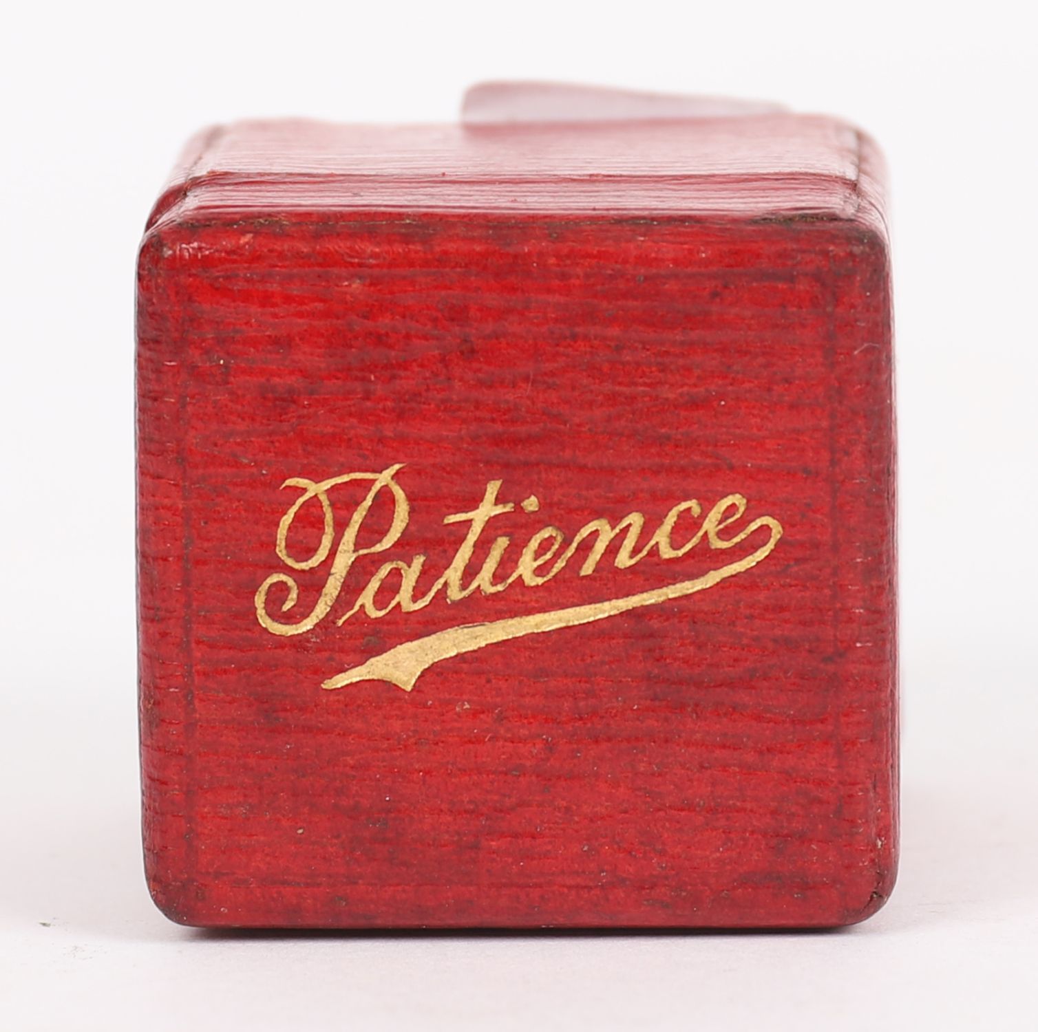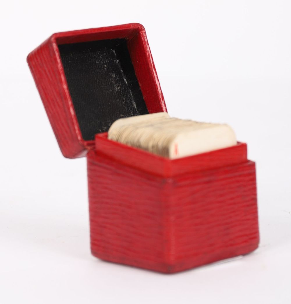 A late 19th / early 20th century miniature set of Patience playing cards in original red leather case, gilt-stamped “Patience.â€