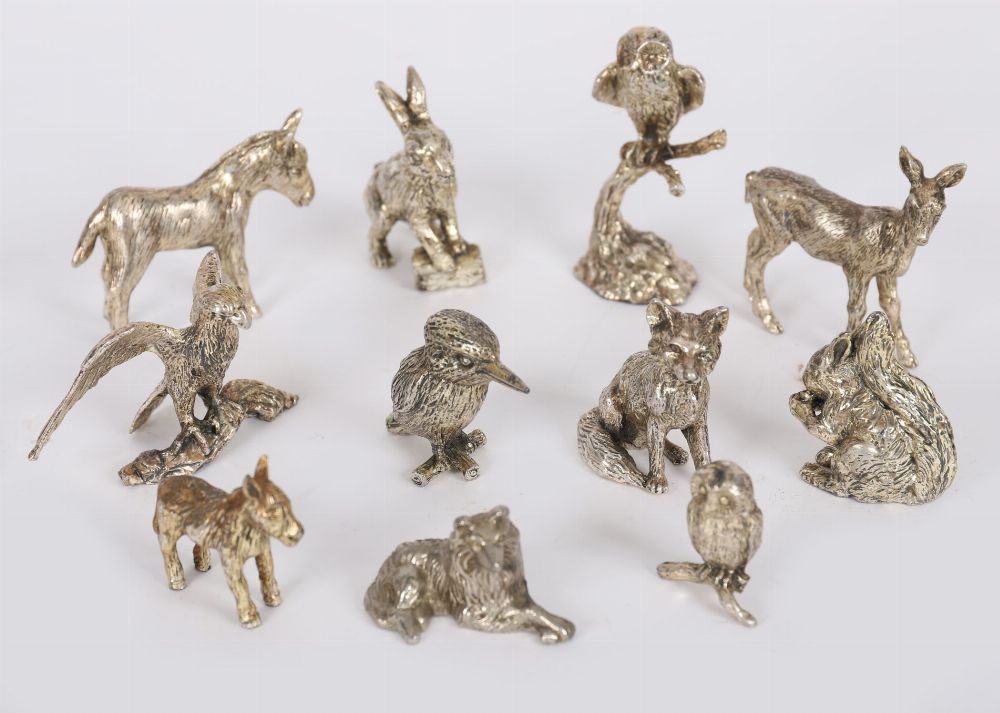Lot 165 CHARMING COLLECTION OF SILVERED METAL MINIATURE ANIMALS AND BIRDS