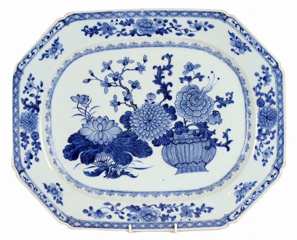 Lot 835 CHINESE BLUE AND WHITE OCTAGONAL MEAT DISH. QING DYNASTY, 18TH CENTURY