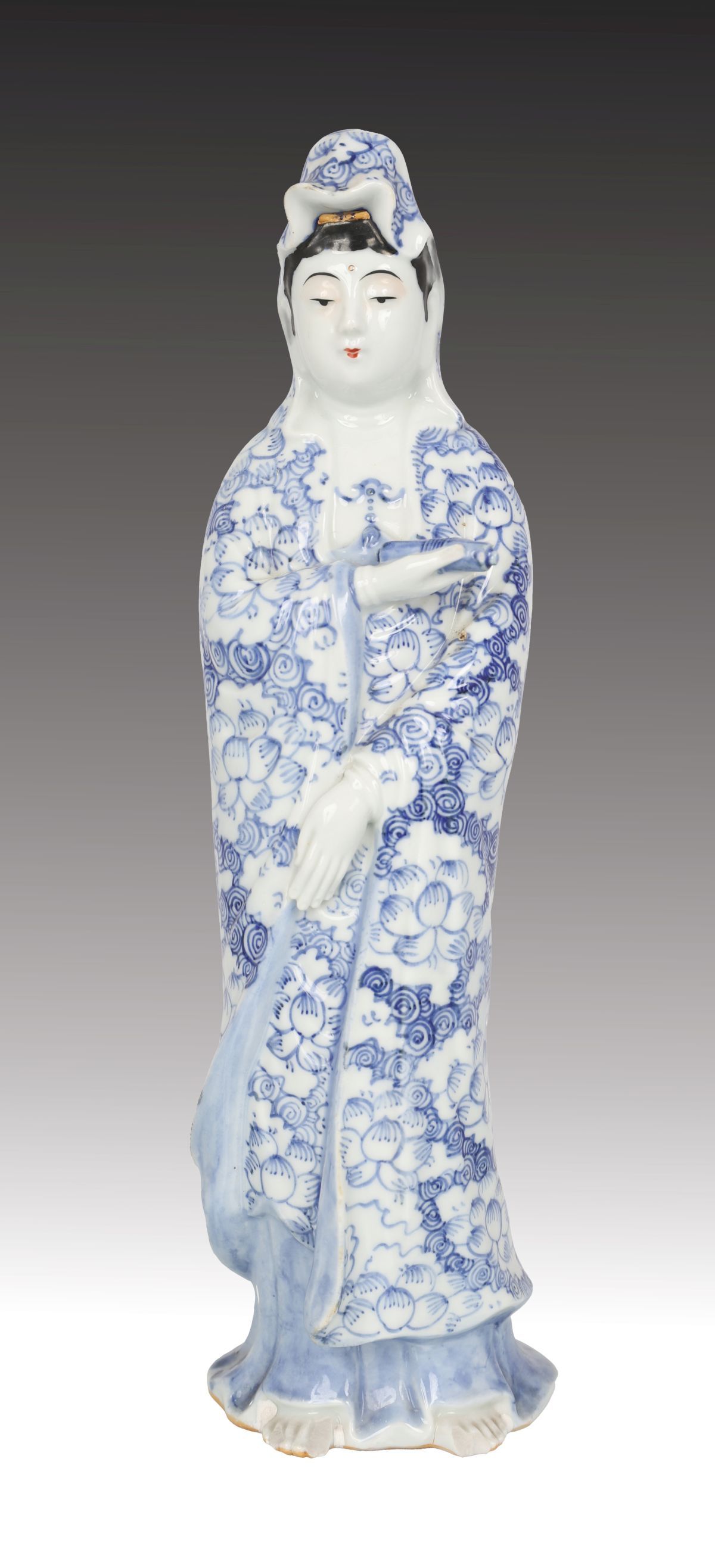 Lot 131 CHINESE BLUE AND WHITE PORCELAIN FIGURE OF GUANYIN