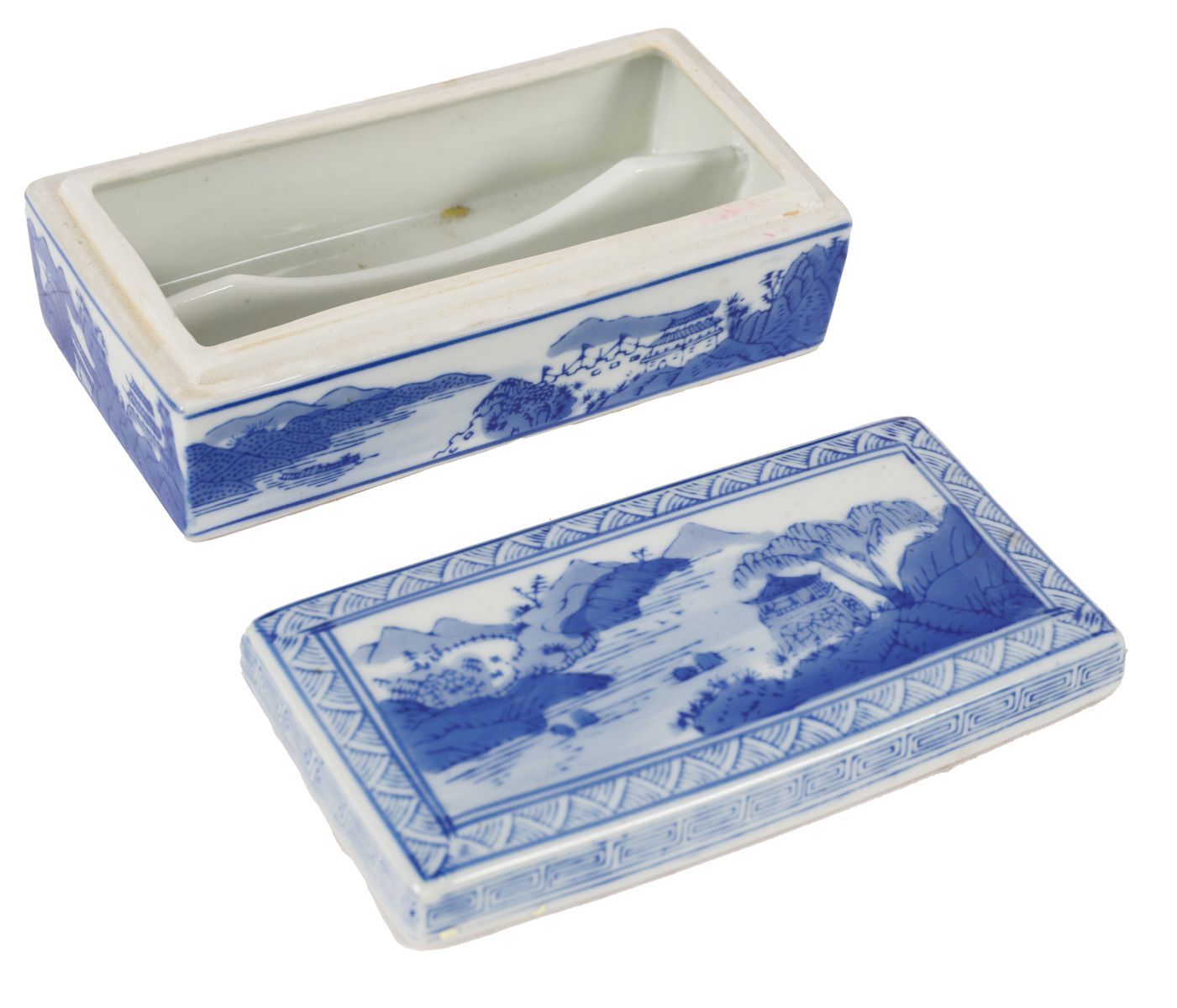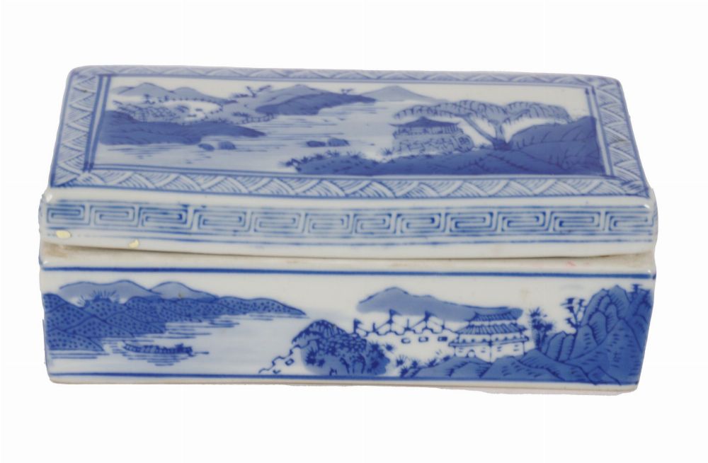Lot 749 CHINESE BLUE AND WHITE PORCELAIN JEWELLERY BOX
