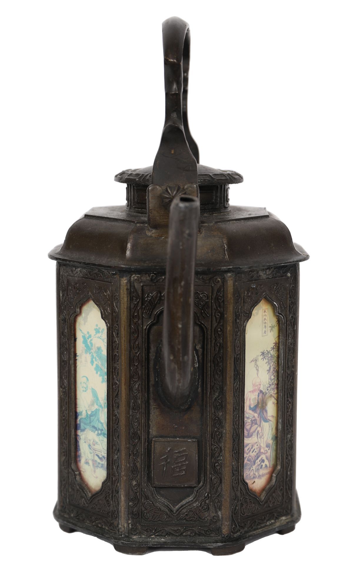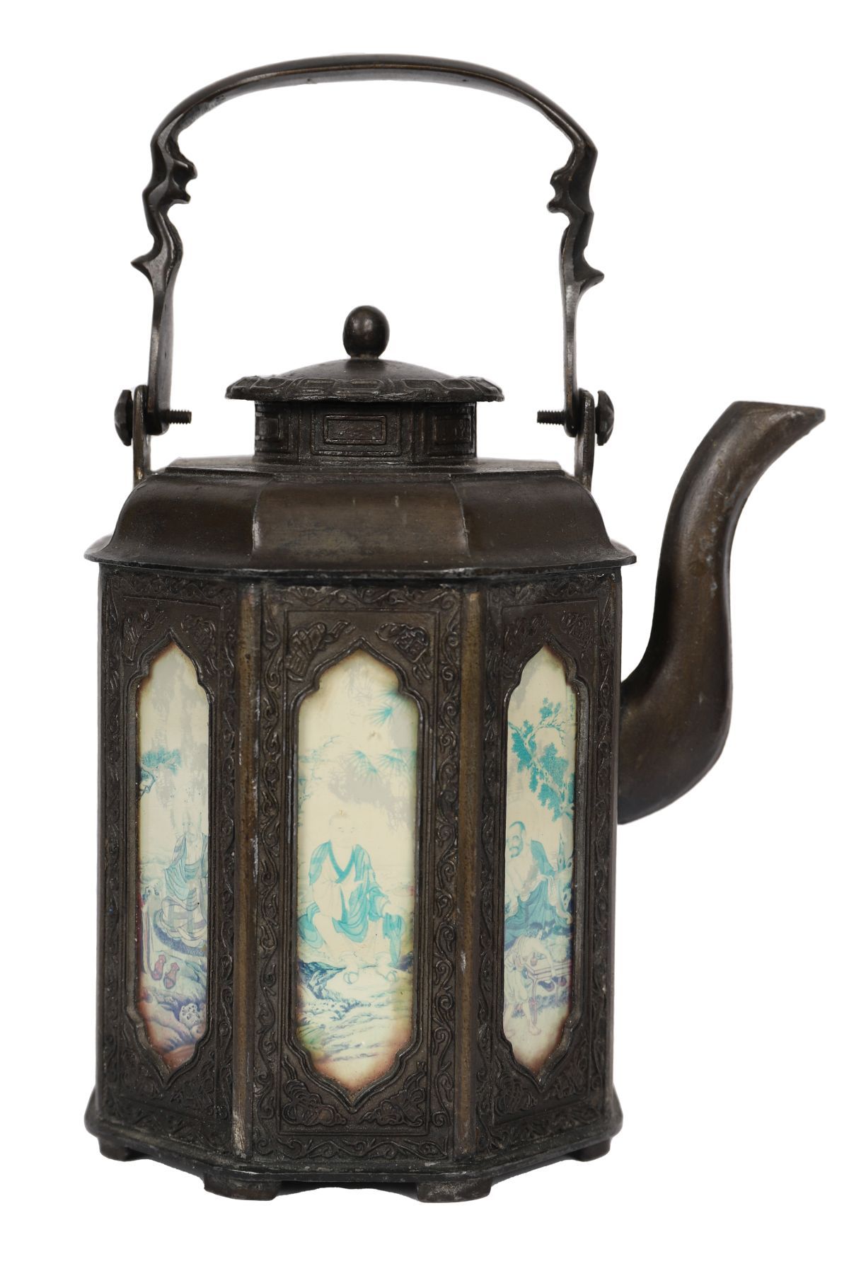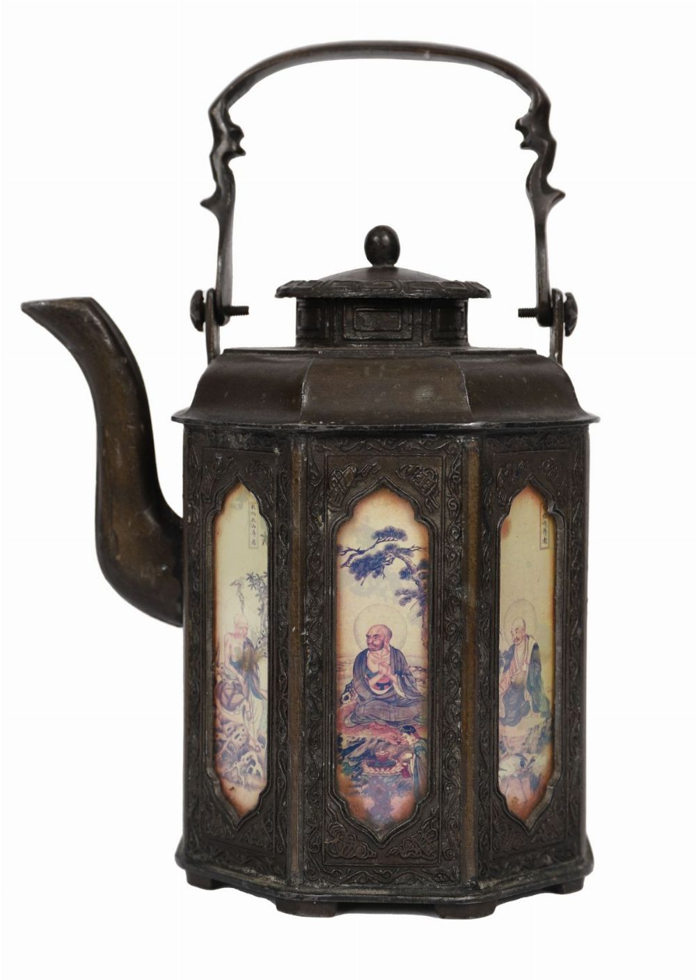 Lot 845 CHINESE BRONZE AND CERAMIC TEAPOT