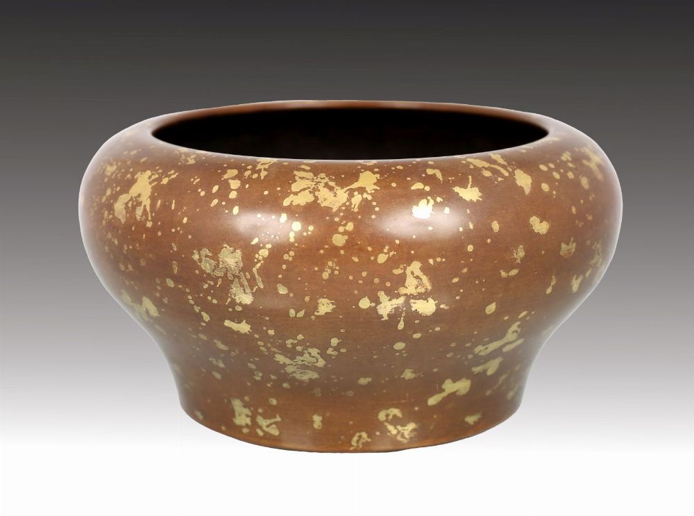 Lot 32 CHINESE BRONZE CENSER WITH GOLD SPLASH INLAY