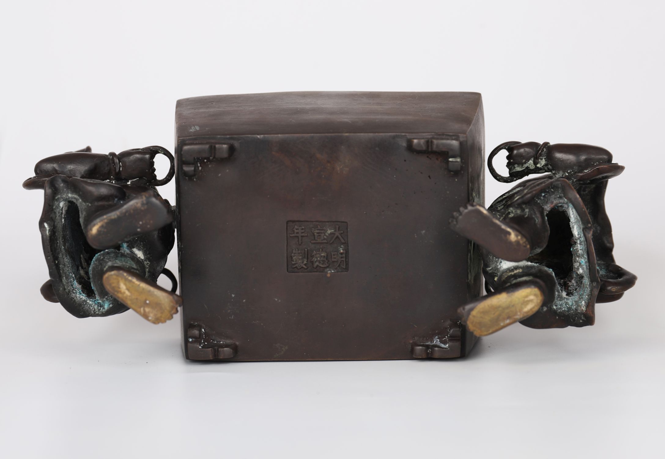 Lot 112 CHINESE BRONZE CENSER WITH FIGURES