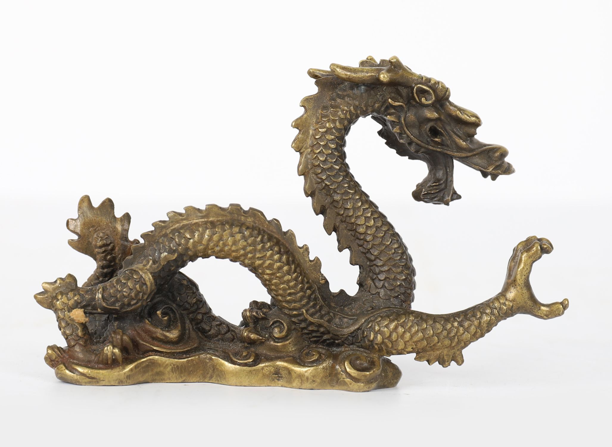 Lot 1201 CHINESE BRONZE DRAGON SCULPTURE