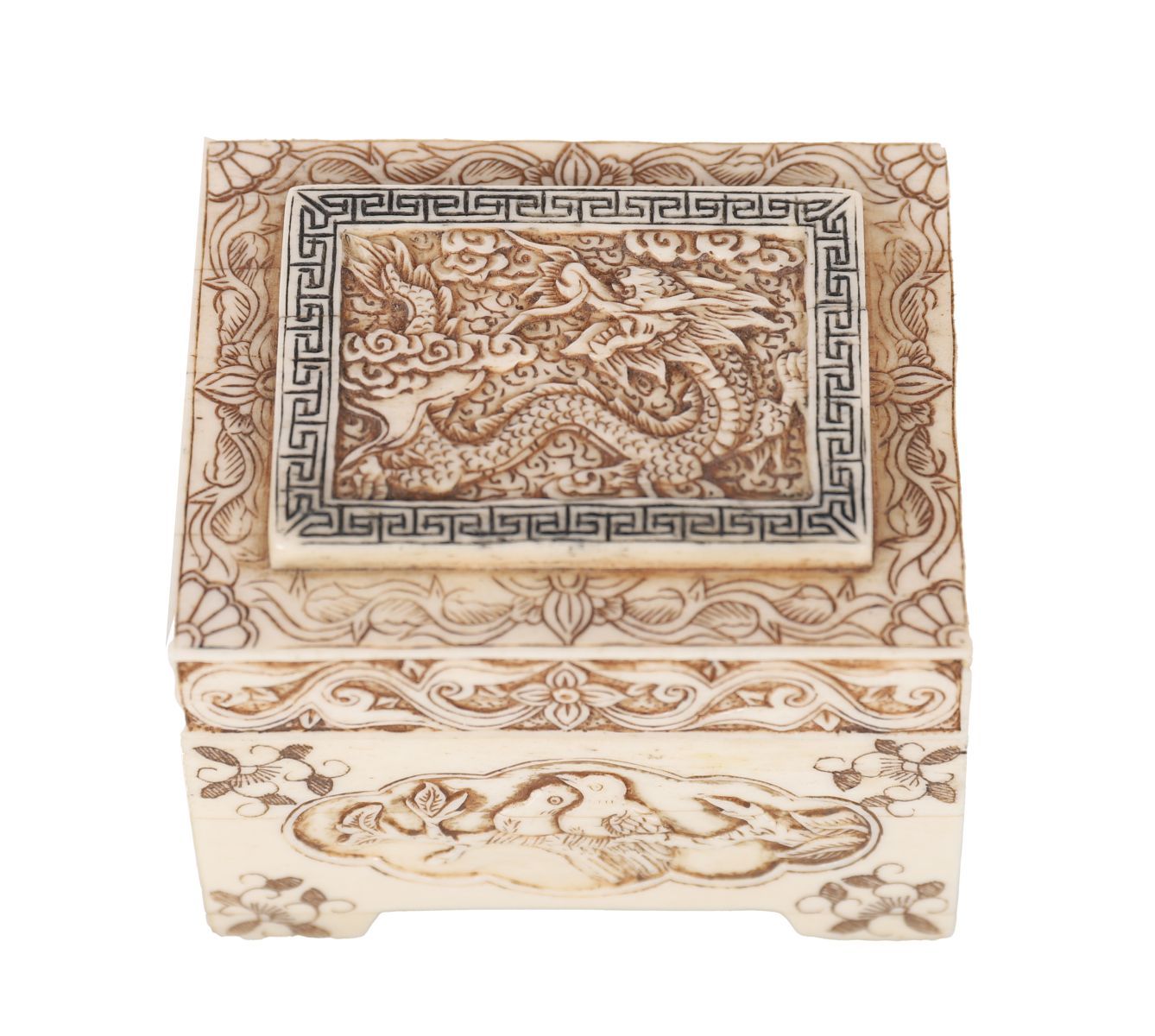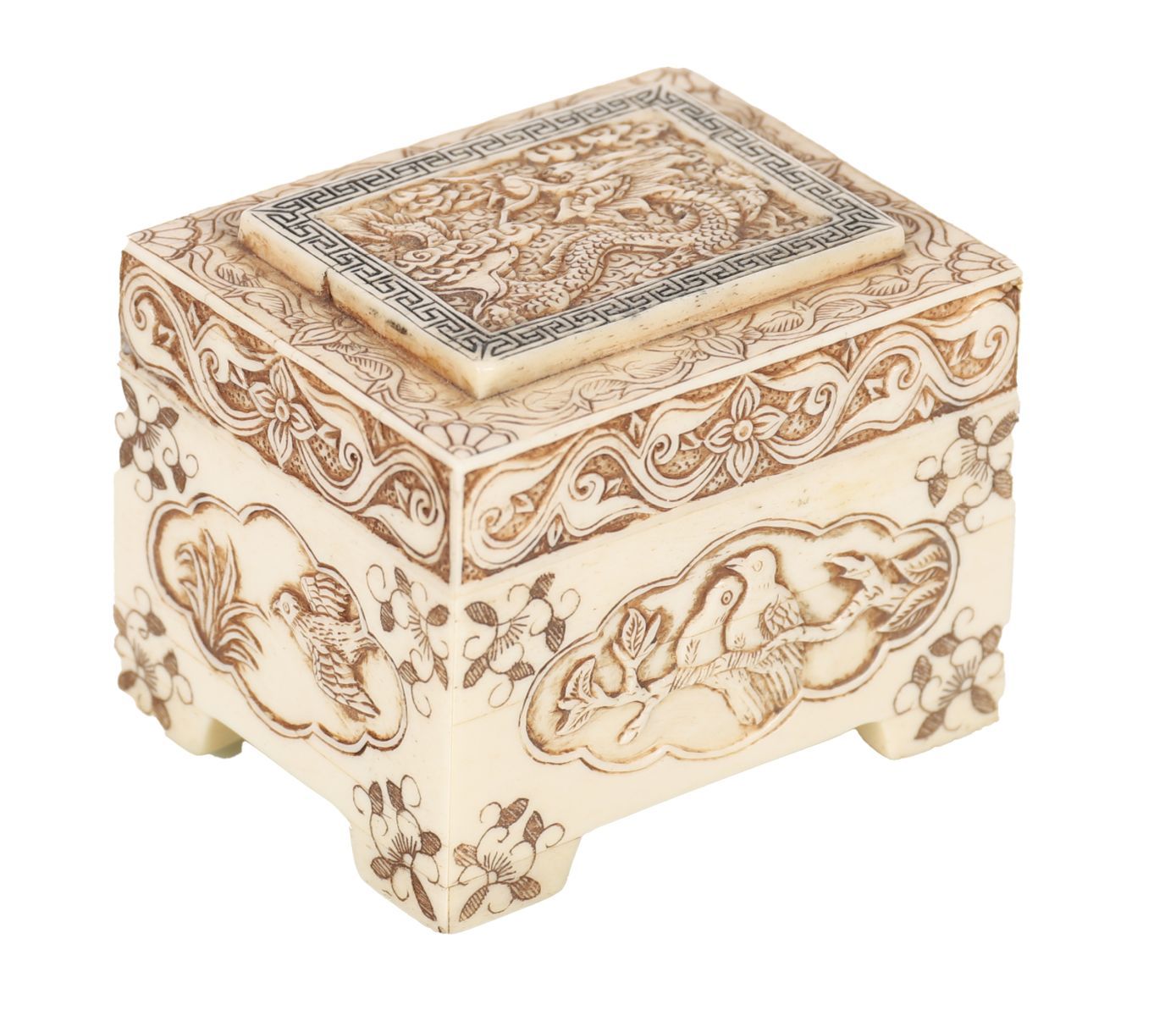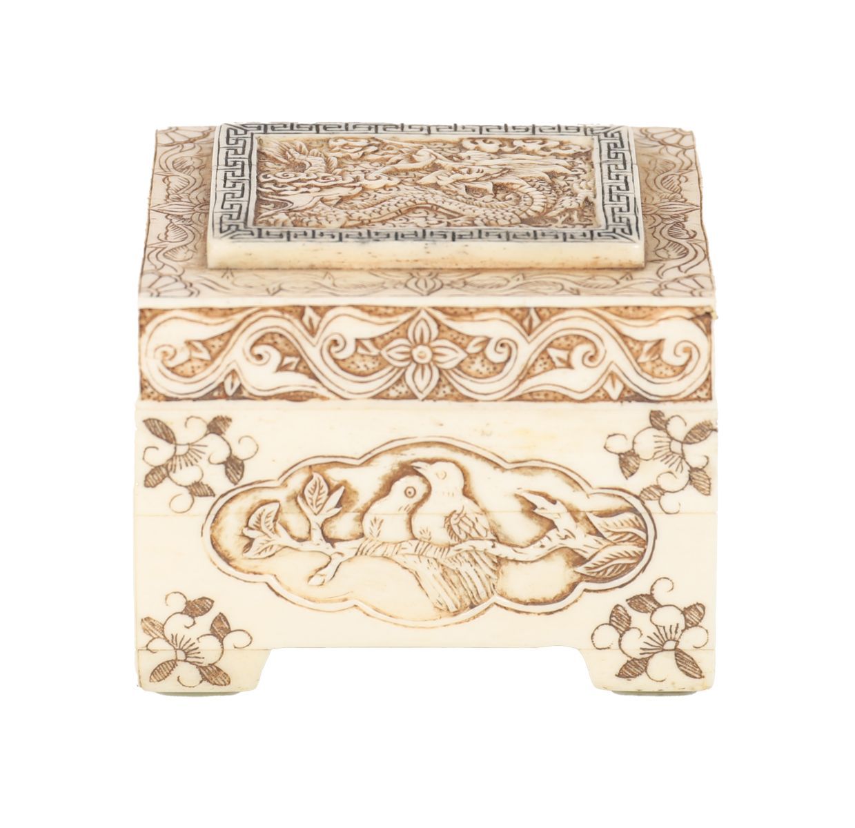 Lot 1316 CHINESE CARVED BONE BOX WITH DRAGON DECORATION