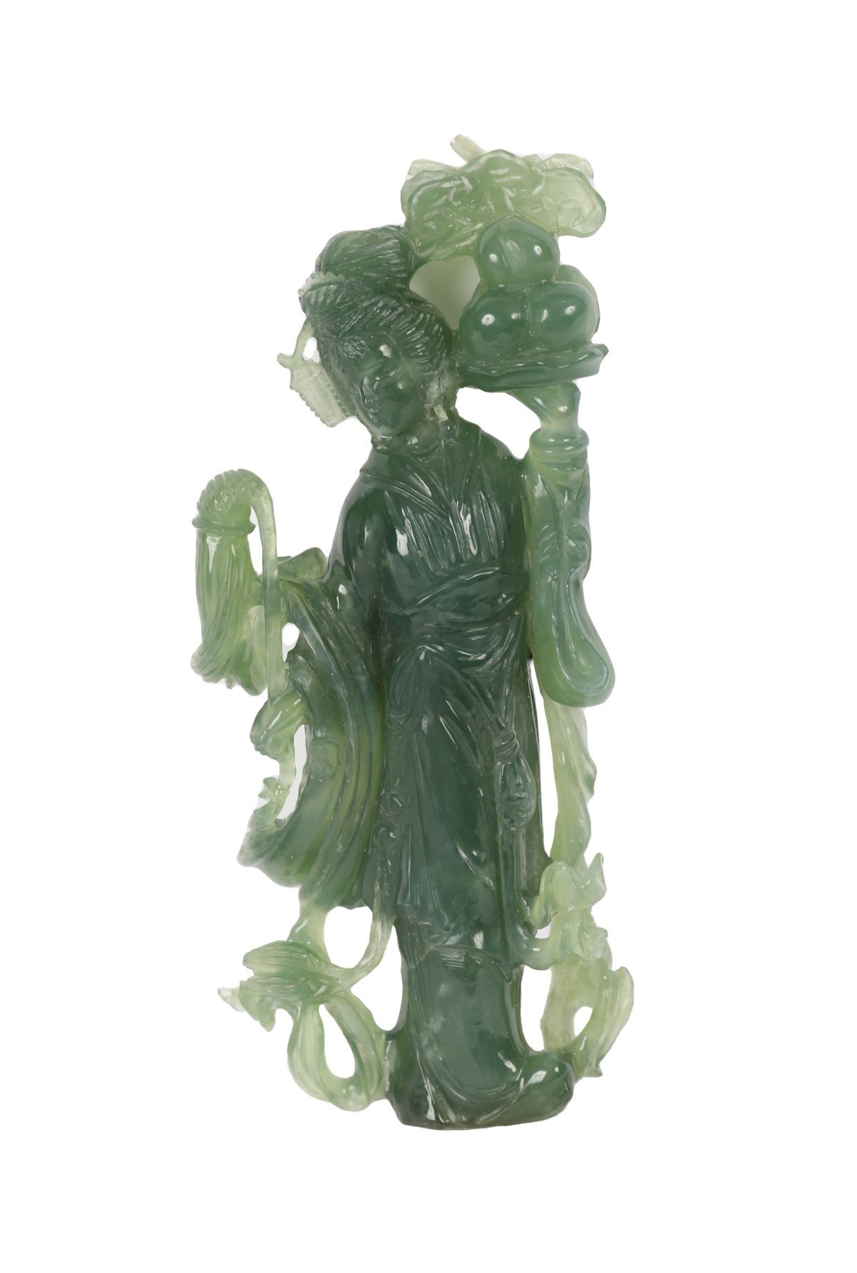 Lot 1378 CHINESE CARVED JADE FIGURE OF GUANYIN