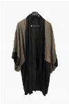A fine Chinese silk dragon robe, elaborately embroidered in gold and coloured silk threads depicting three five-clawed imperial dragons among stylised clouds and flaming pearls on a black ground. The robe features wide sleeves, a plain front with contrasting brown silk lining.
