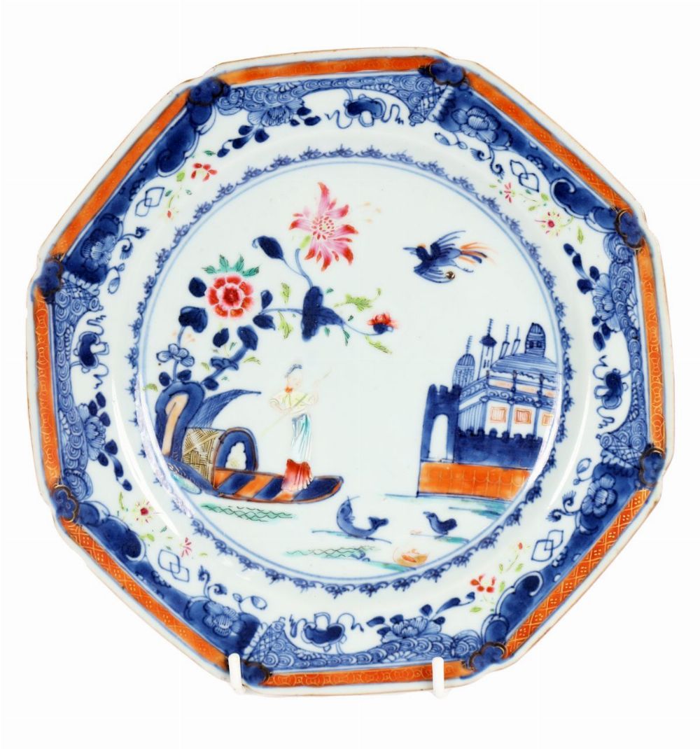 Lot 791 CHINESE FAMILLE ROSE OCTAGONAL PORCELAIN PLATE, QIANLONG PERIOD (1736–1795)