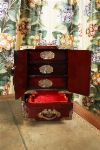 Lot 96 CHINESE HARDWOOD AND JADE PANELLED JEWELLERY CABINET