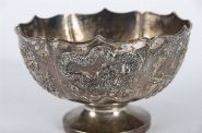 Lot 128 CHINESE OR JAPANESE SILVER BOWL WITH DRAGON RELIEF
