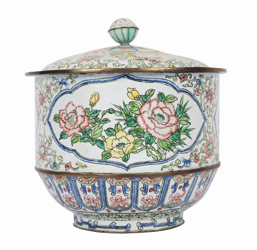 Lot 1386 CHINESE PAINTED ENAMEL BOWL AND COVER