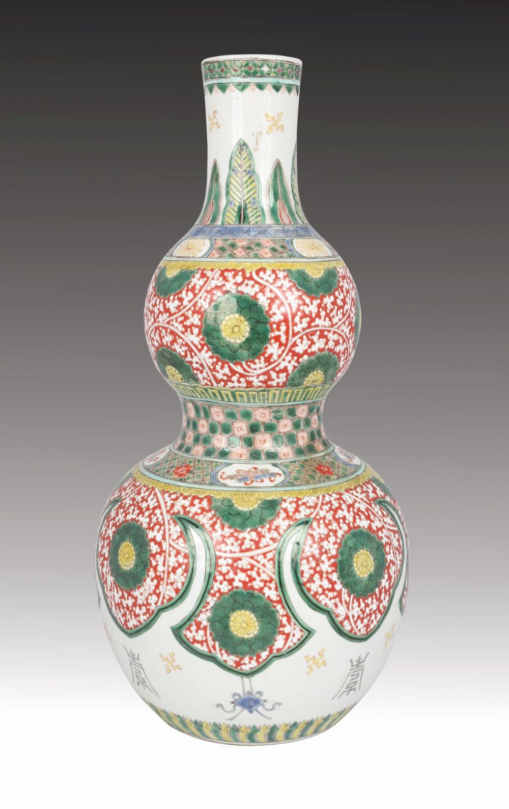 Lot 13 CHINESE POLYCHROME DOUBLE GOURD VASE