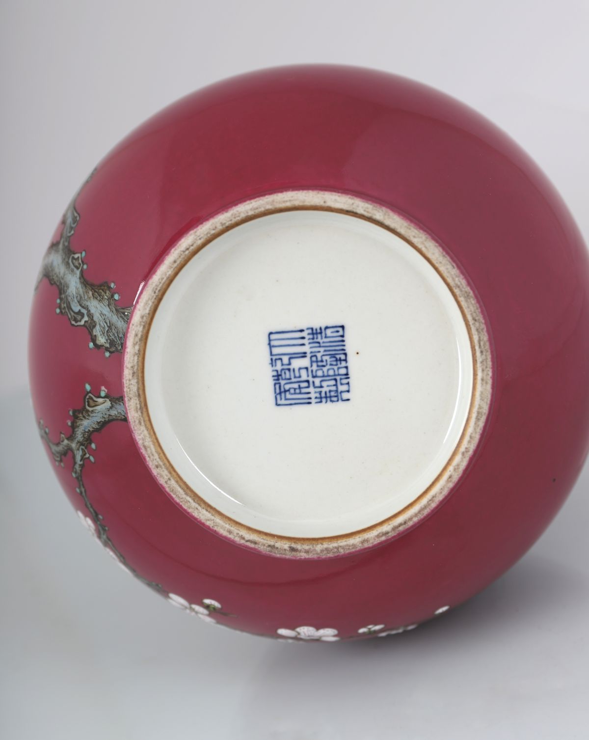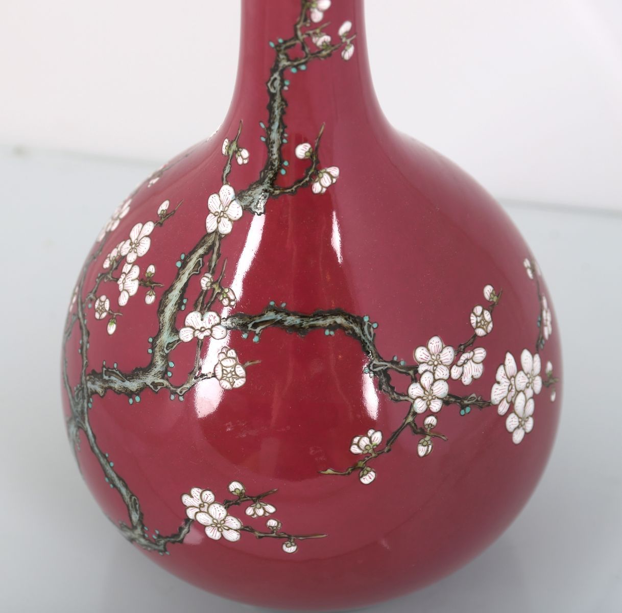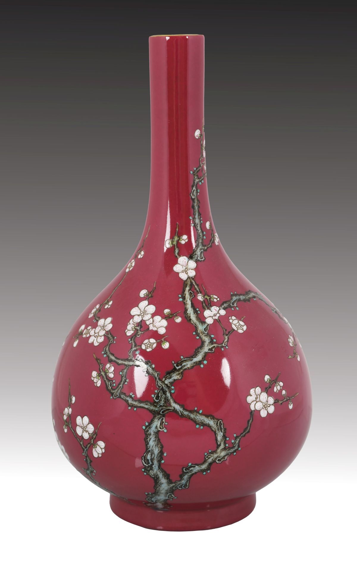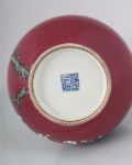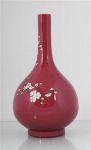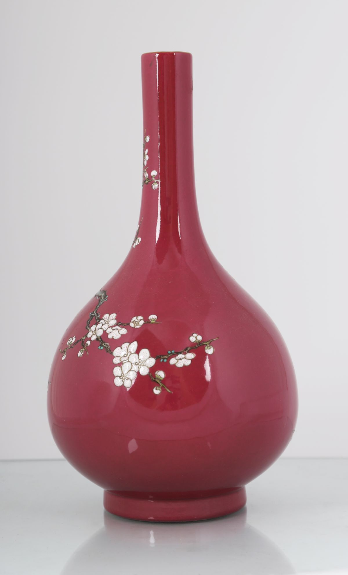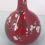 of bottle shape, magenta ground decorated with a white blossom branch. Seal mark of Qianlong.