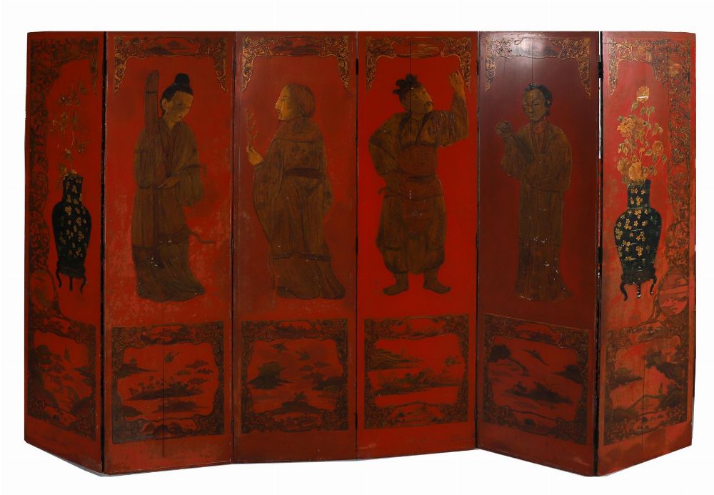 Lot 753 CHINESE QING 6-FOLD LACQUERED SCREEN