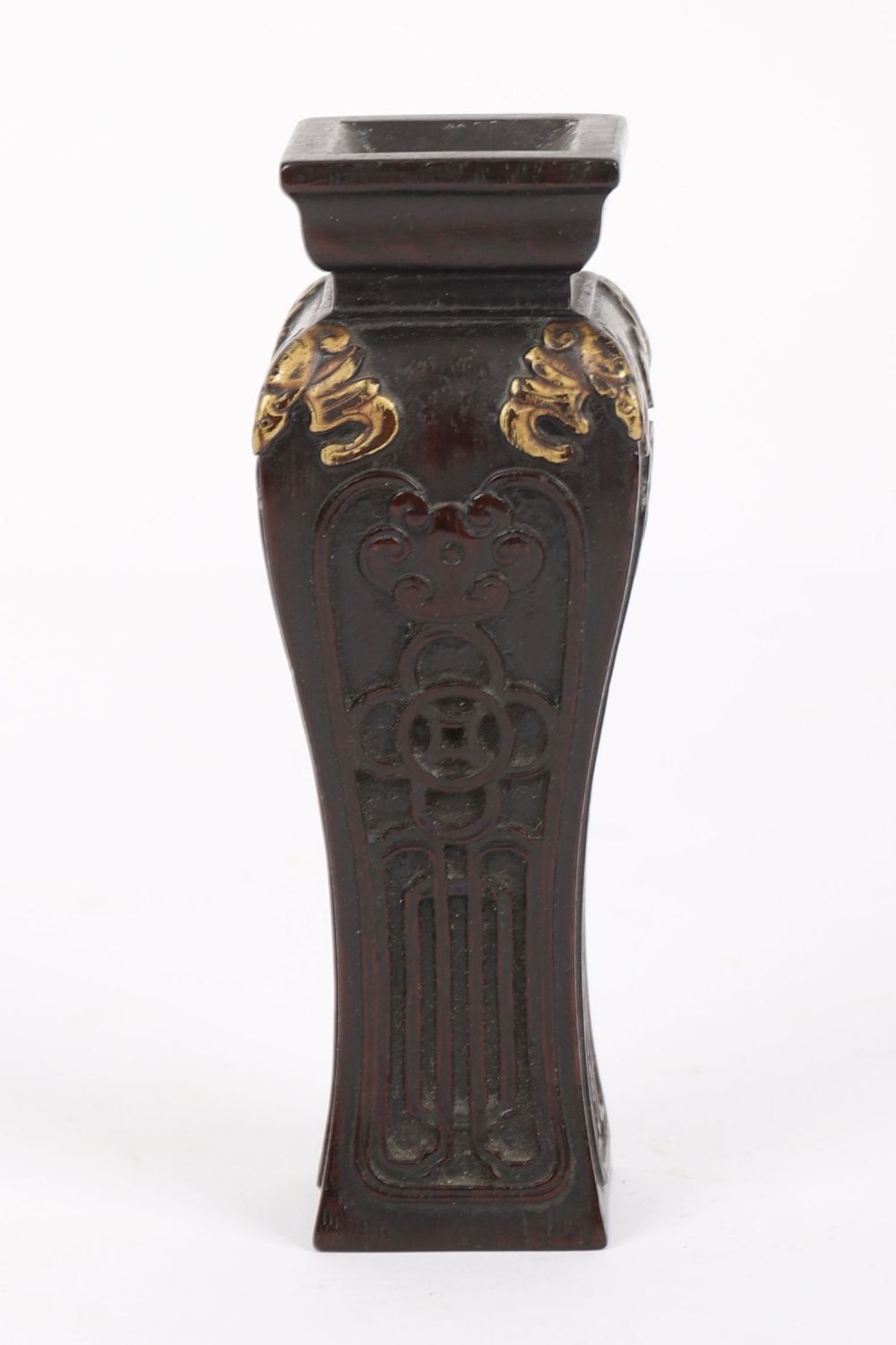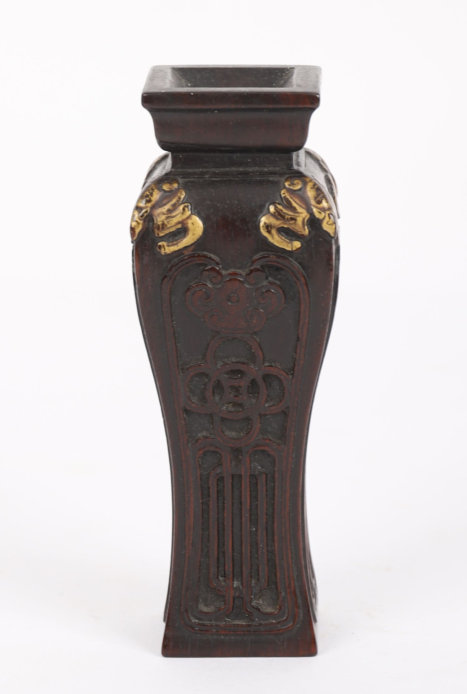 Lot 1257 CHINESE QING ZITAN WOOD SCHOLAR'S VASE WITH GILT BATS