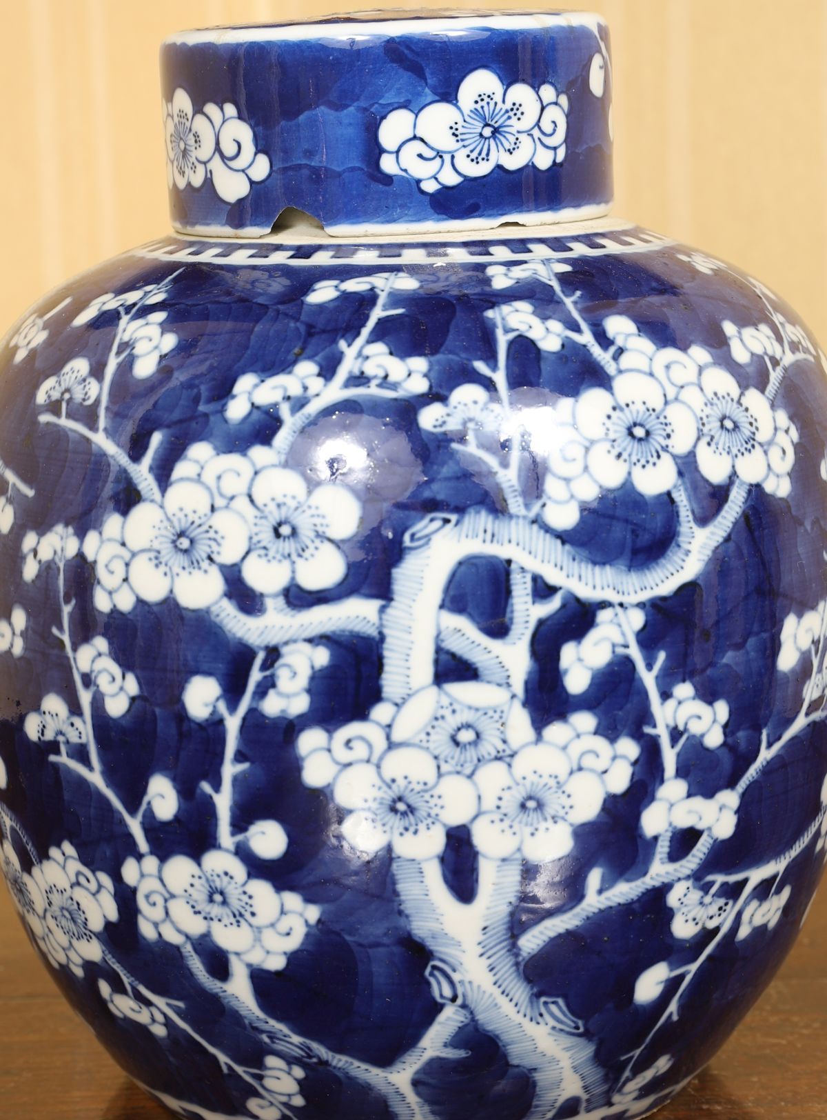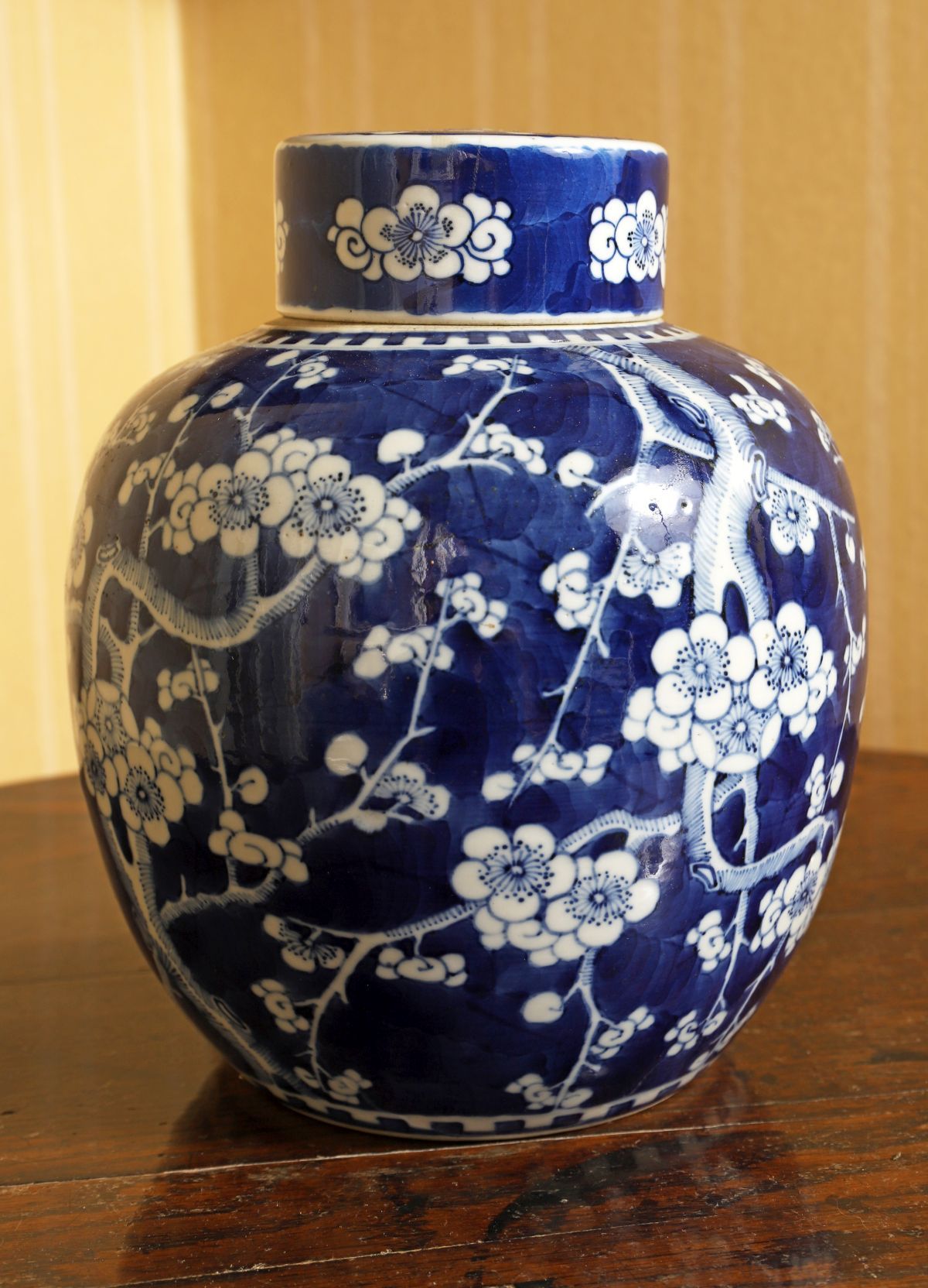 of bulbous form with overall prunus decoration.