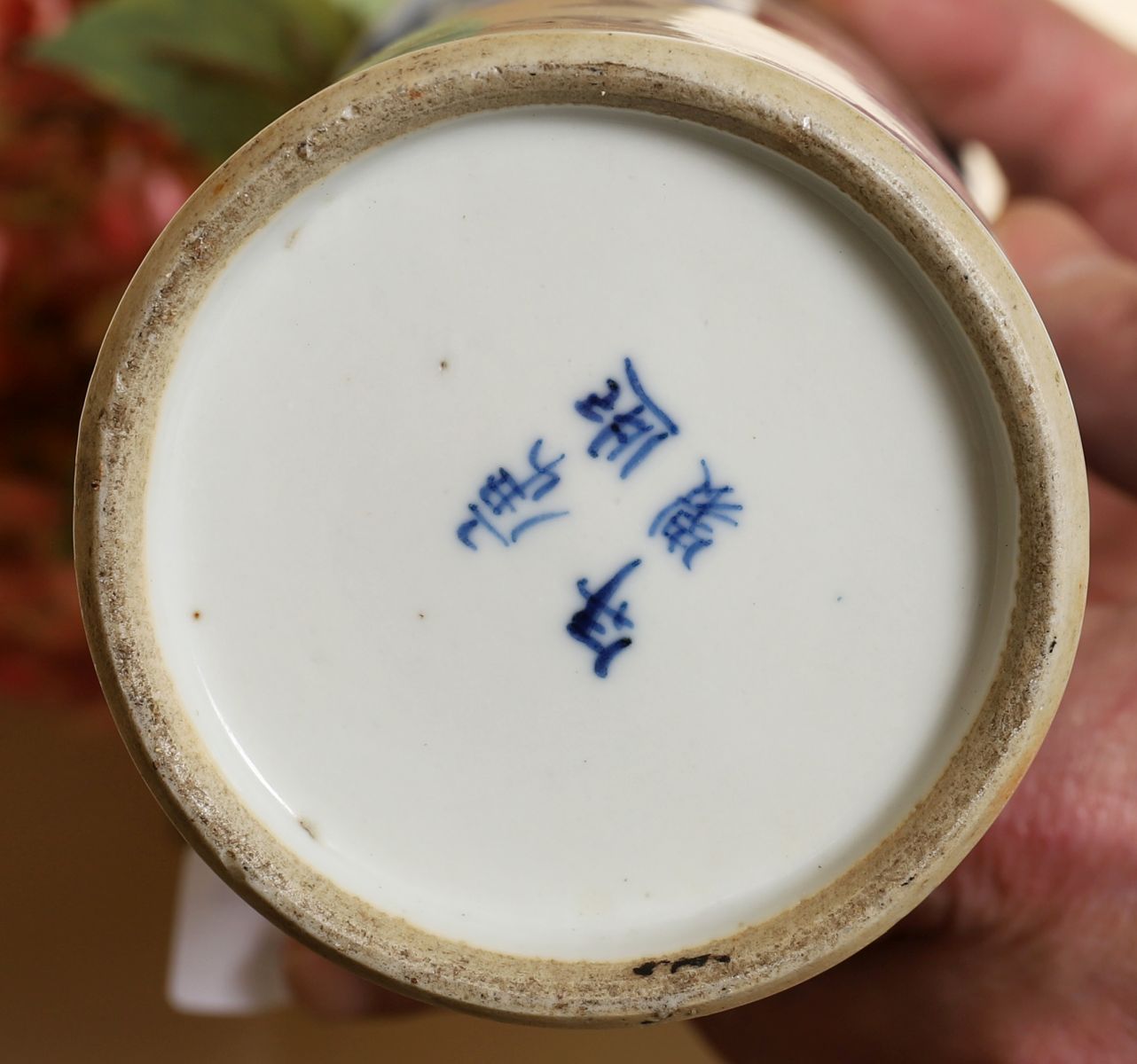 Lot 11 CHINESE QING BLUE AND WHITE SLEEVE VASE
