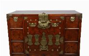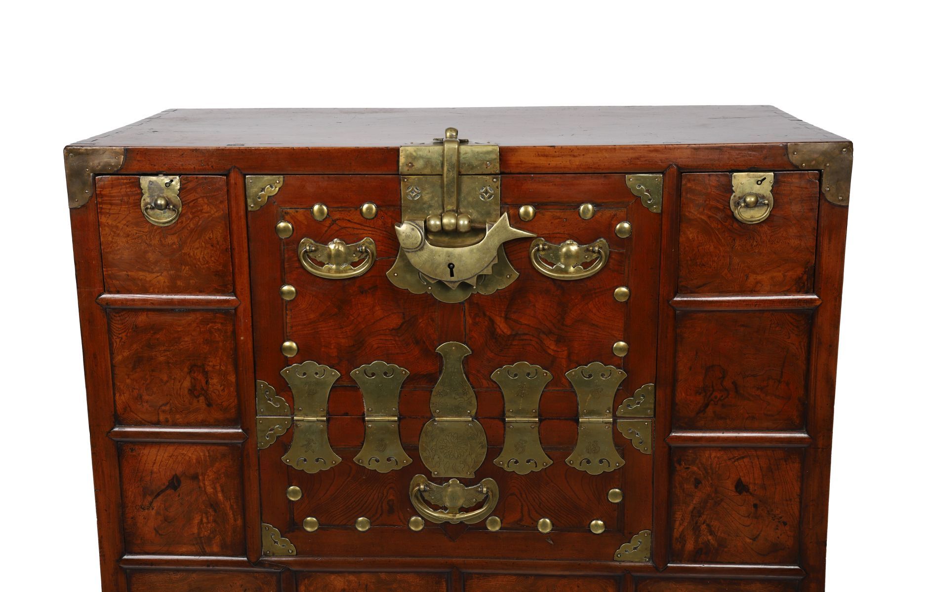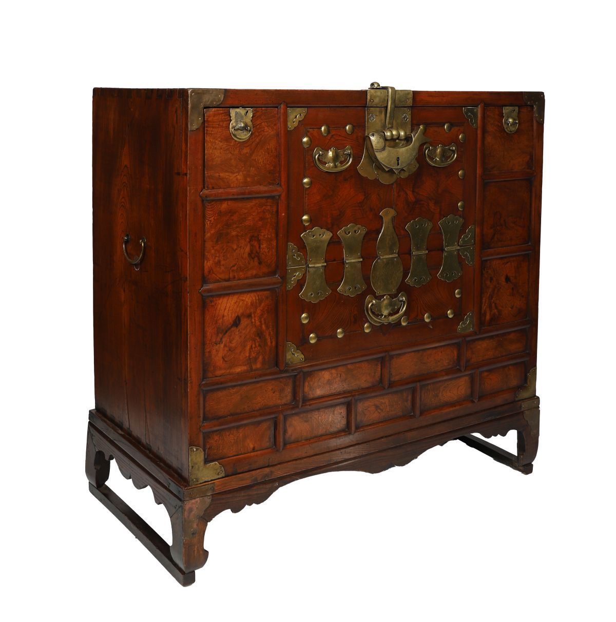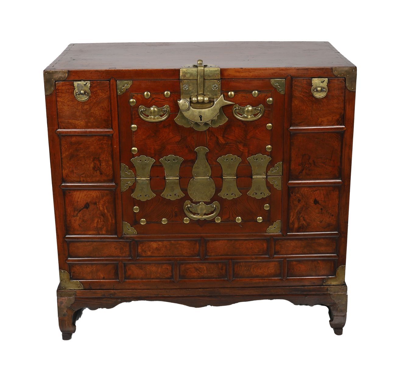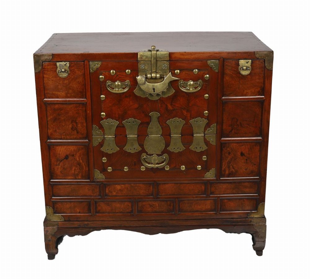 Lot 359 CHINESE QING DYNASTY BRASS-MOUNTED HARDWOOD CHEST