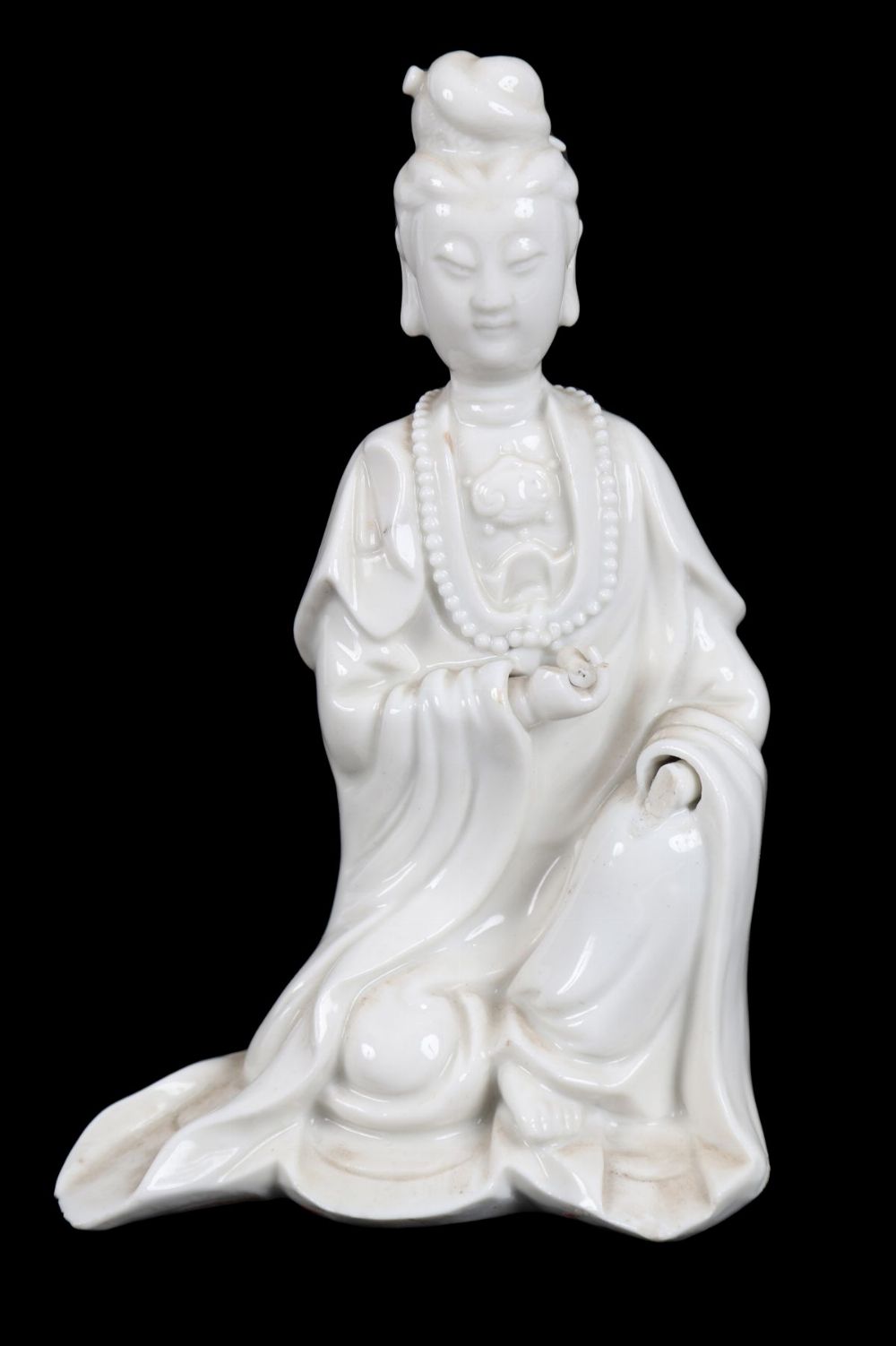 Lot 771 CHINESE QING DYNASTY DEHUA PORCELAIN FIGURE OF GUANYIN