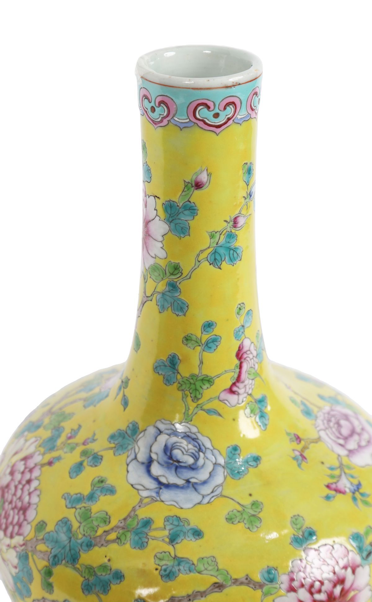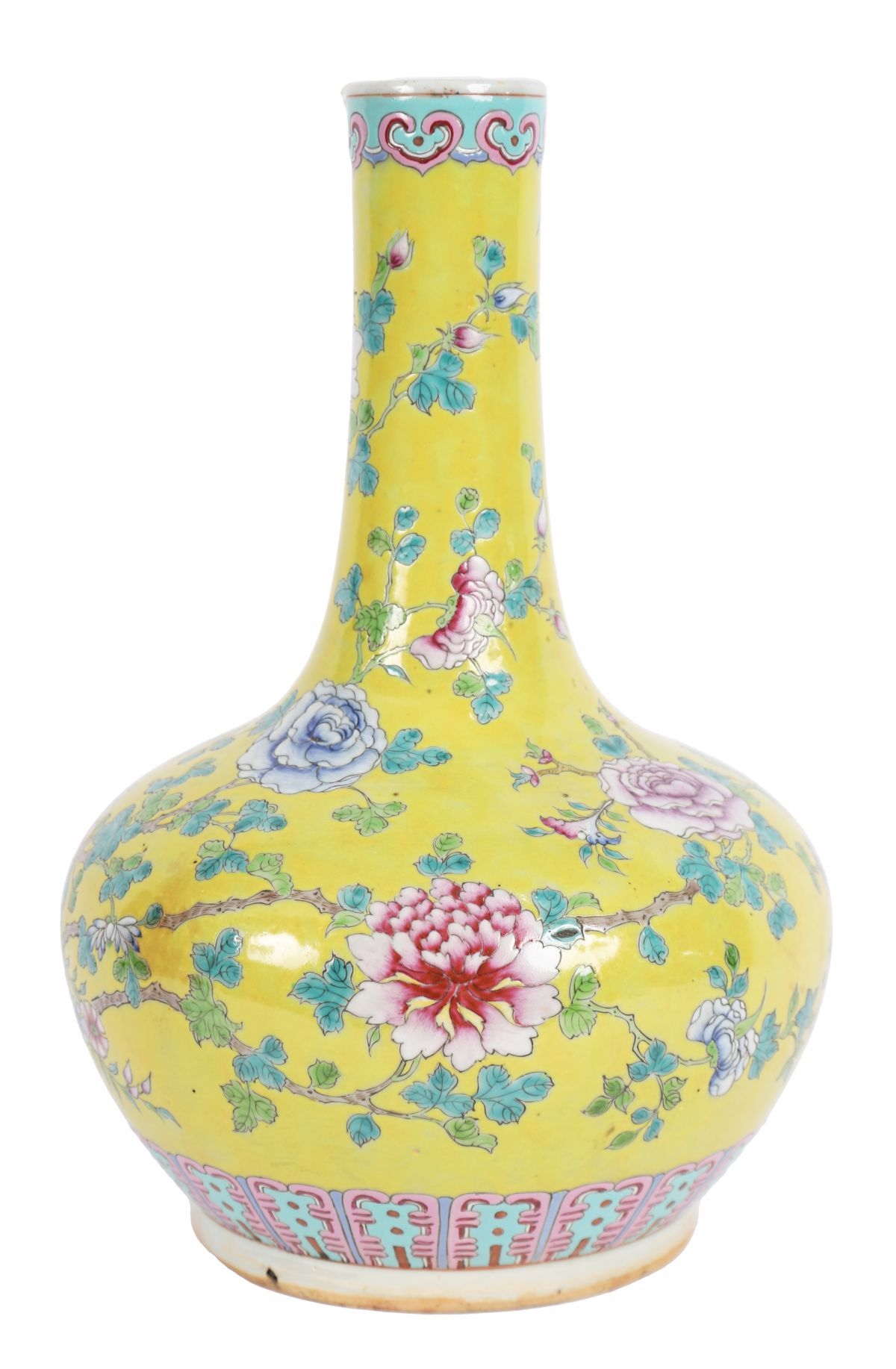 Chinese Qing dynasty porcelain vase decorated in polychrome enamels with floral ornament.