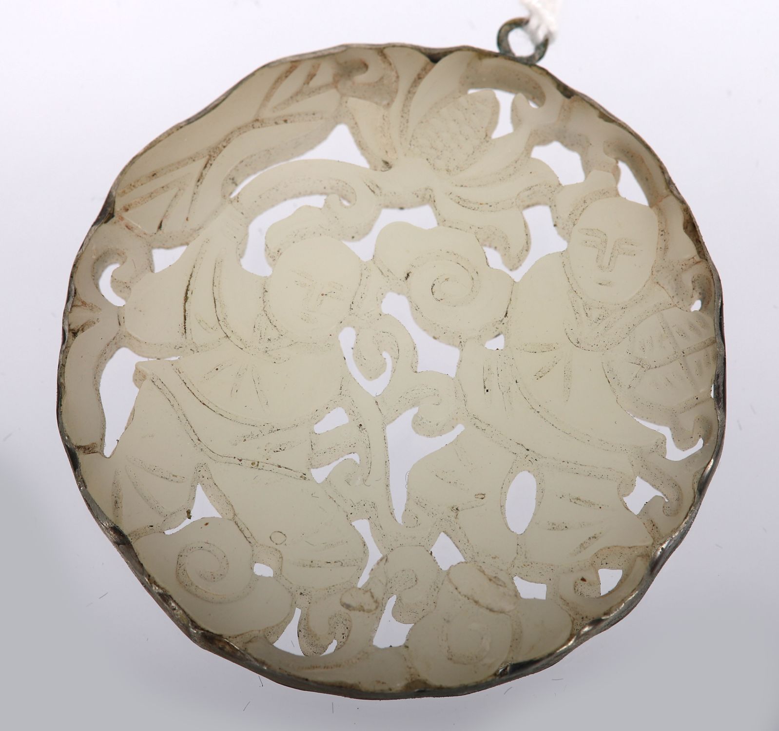 of circular reticulated form depicting playful youths amongst leaf scrolls.