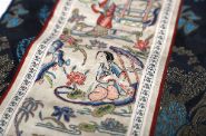 Lot 151 CHINESE SILK EMBROIDERED PANEL DEPICTING FIGURES IN A GARDEN PAVILION