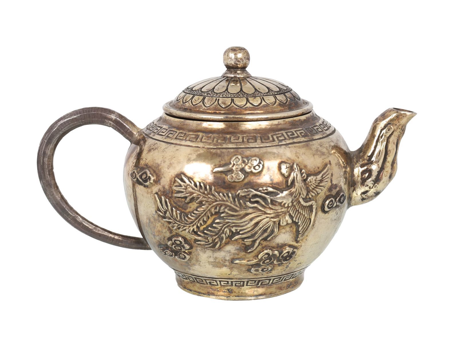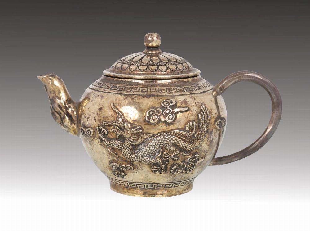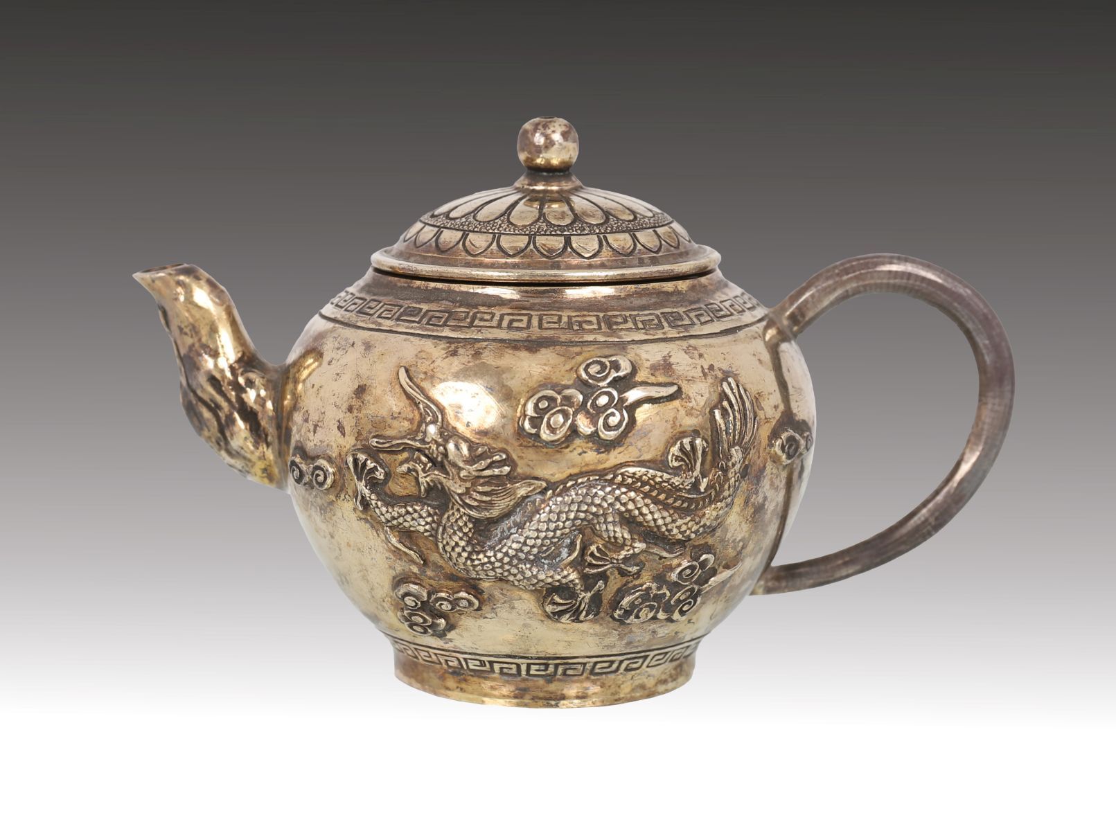 Lot 137 CHINESE SILVER DRAGON TEAPOT