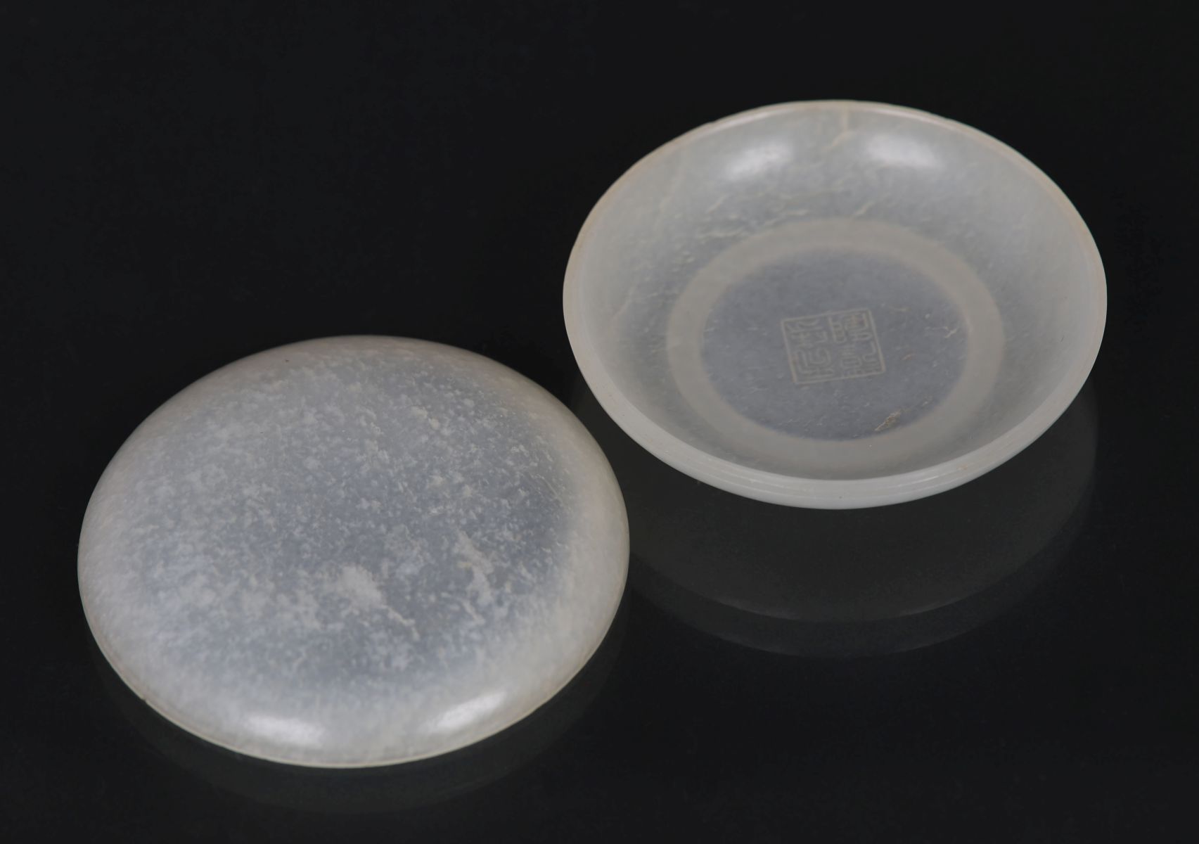 Lot 121 CHINESE WHITE JADE PASTE JAR AND COVER