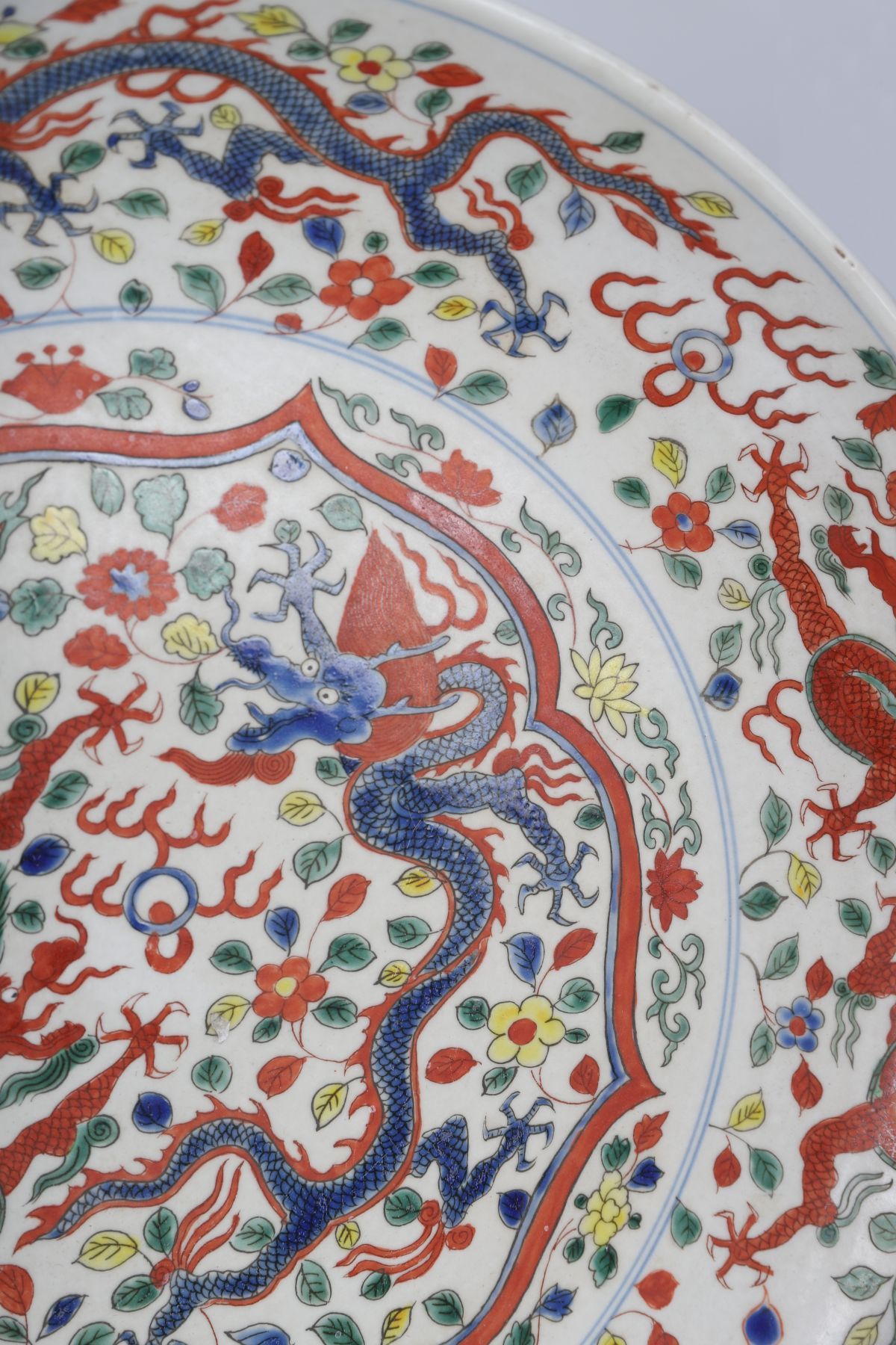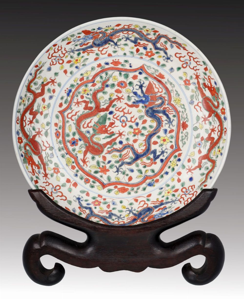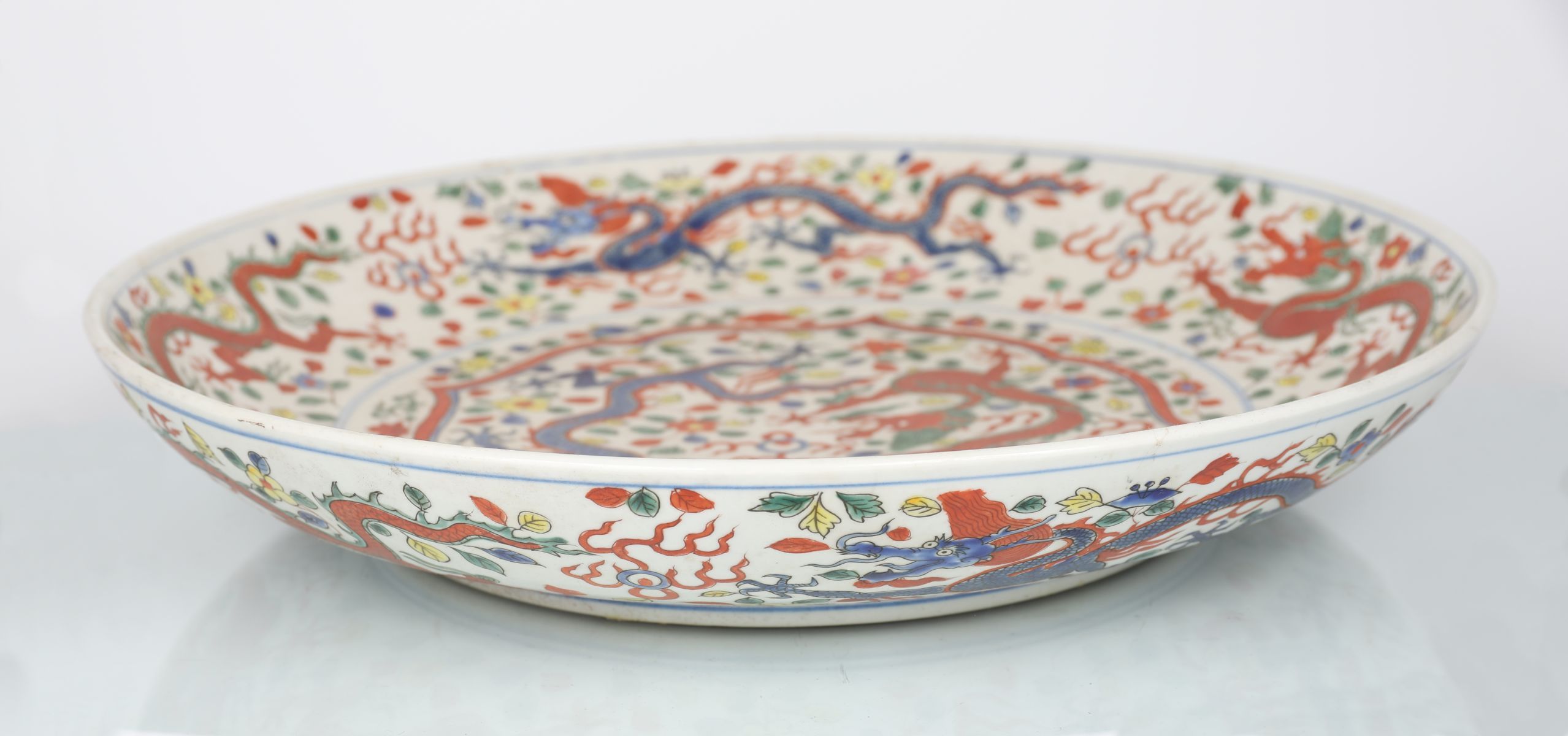 Lot 3 CHINESE WUCAI ENAMELLED DRAGON CHARGER