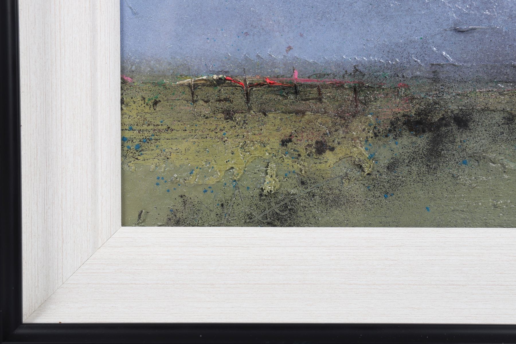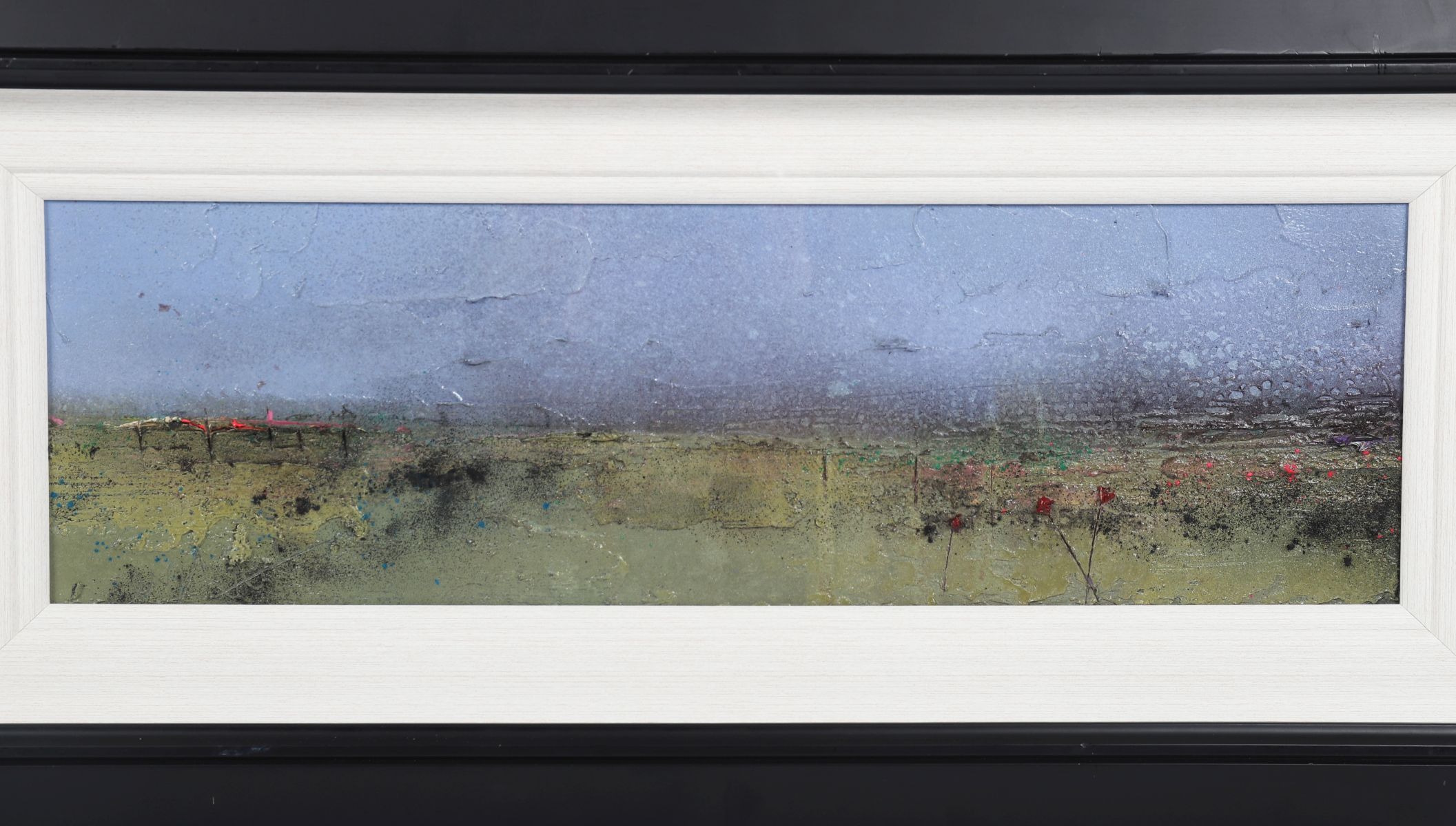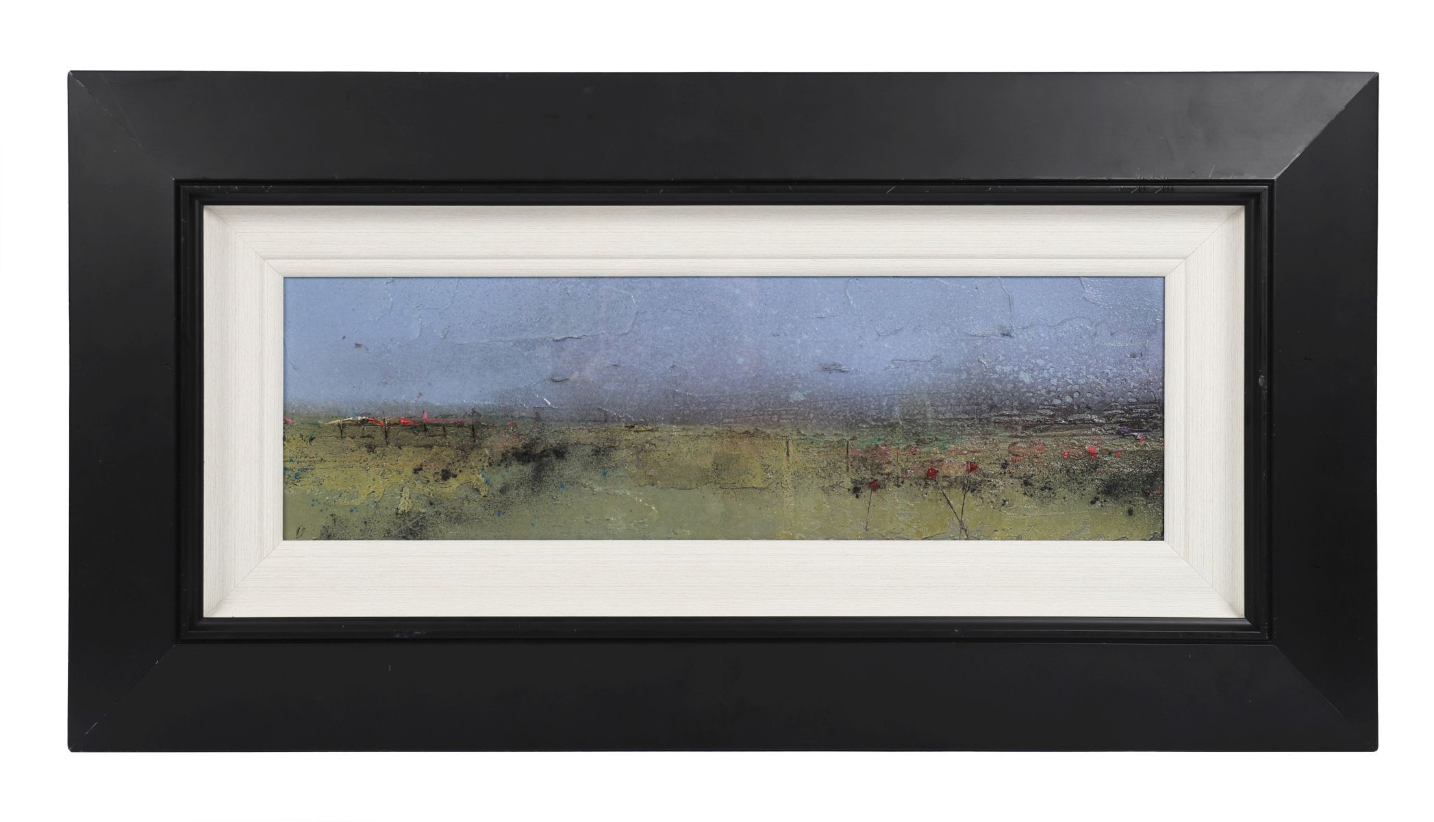 An evocative Connemara vista, painted with textured acrylics in muted tones of green and blue. The artist’s expressive layering captures the light and expanse of the Irish West.