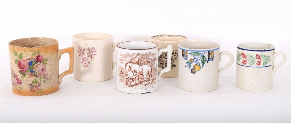Lot 1760 COLLECTION OF SIX SPONGEWARE DRINKING MUGS