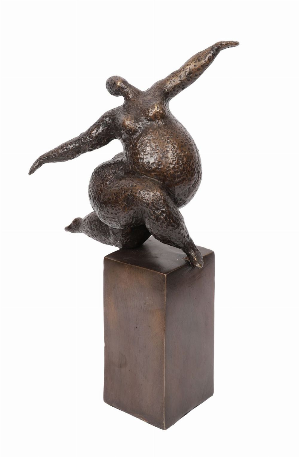 Lot 337 CONTEMPORARY ABSTRACT BRONZE SCULPTURE, DANCING FIGURE ON SQUARE PLINTH