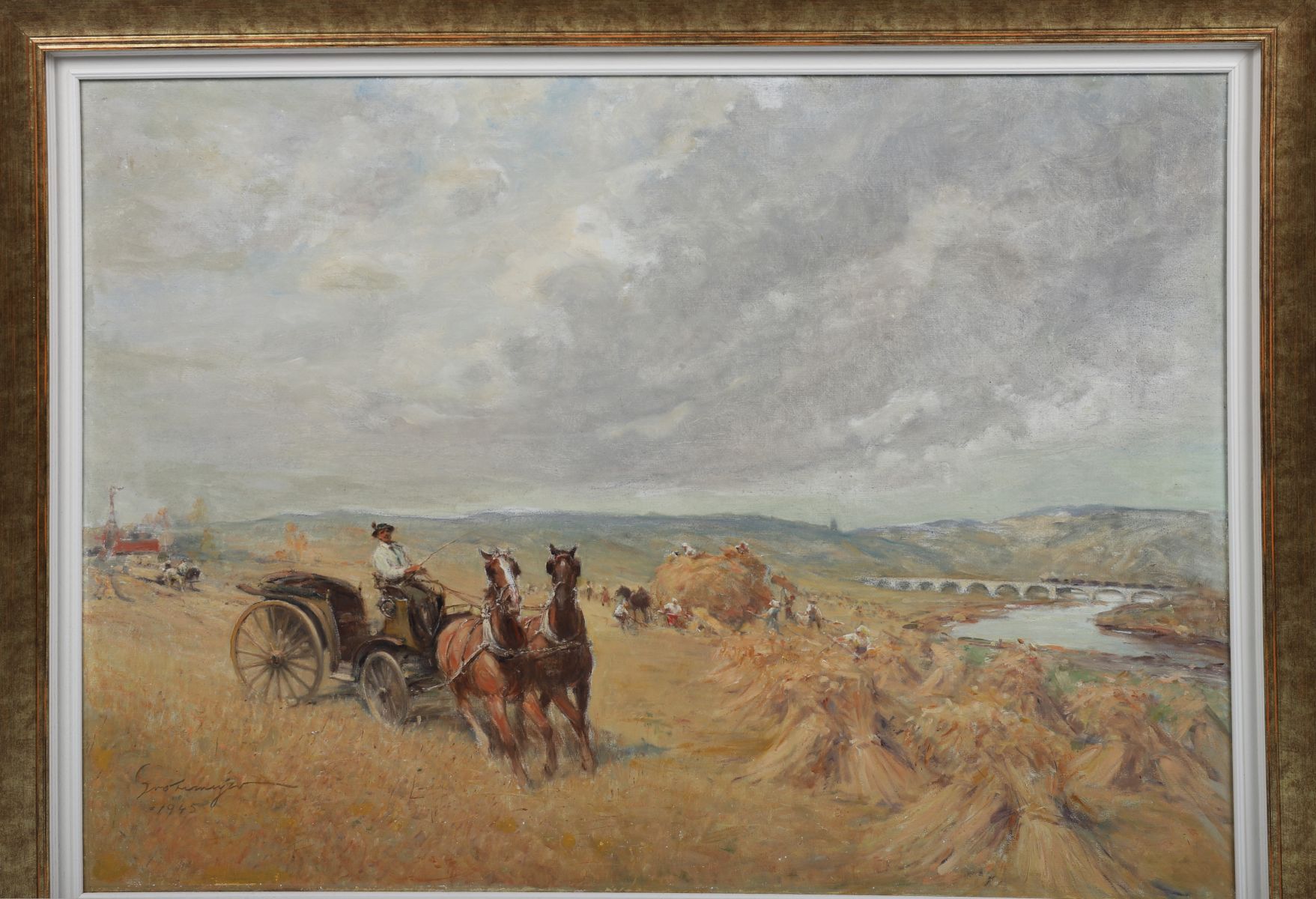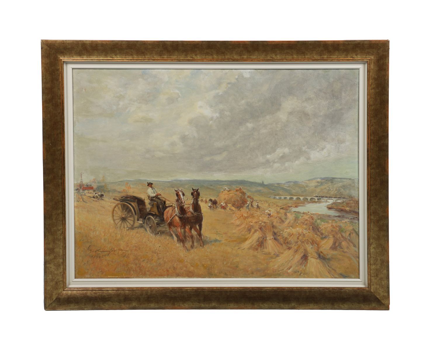 Lot 102 CONTINENTAL SCHOOL (20TH CENTURY) – HARVESTING SCENE WITH HORSE AND CART