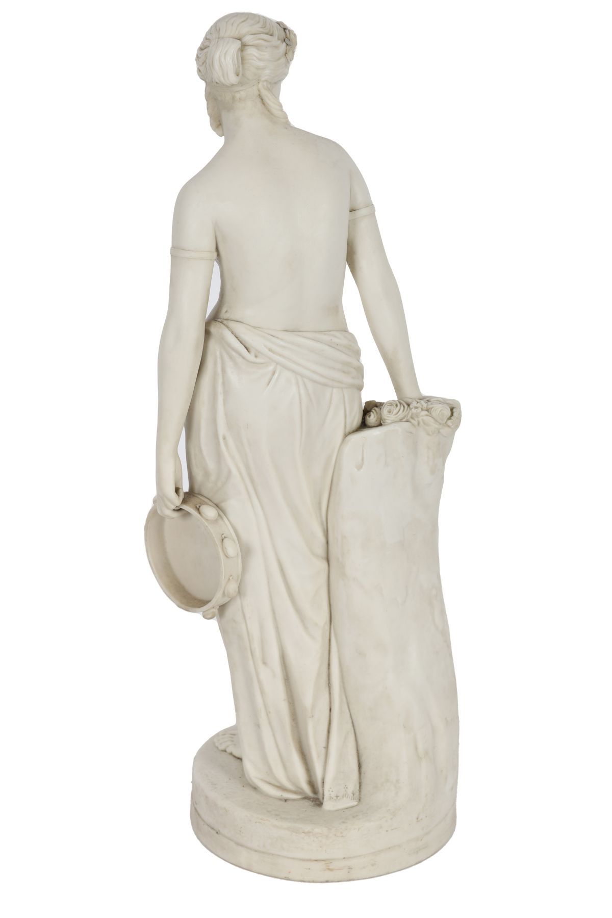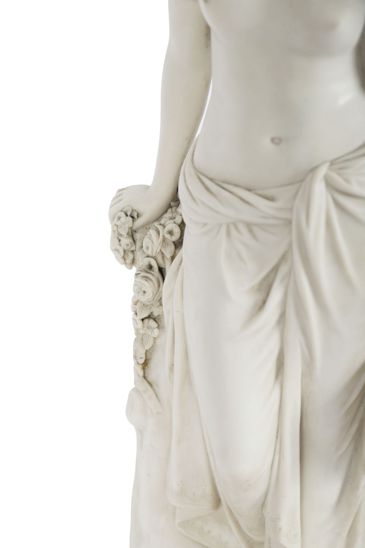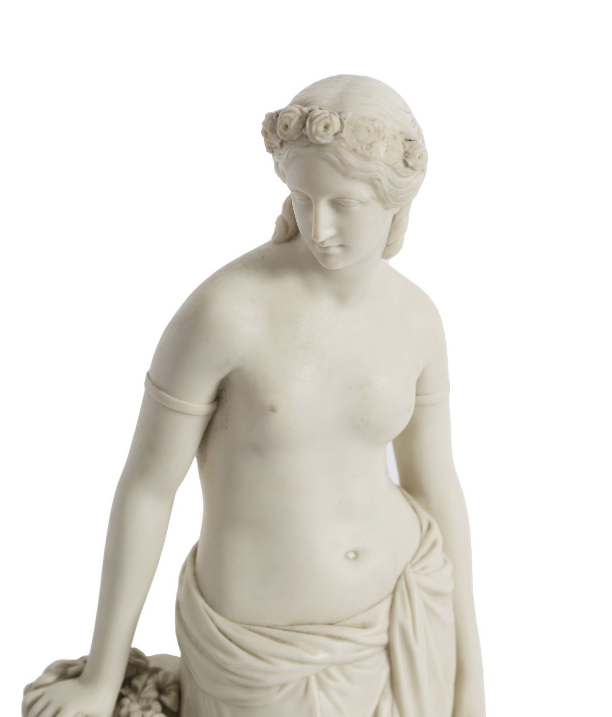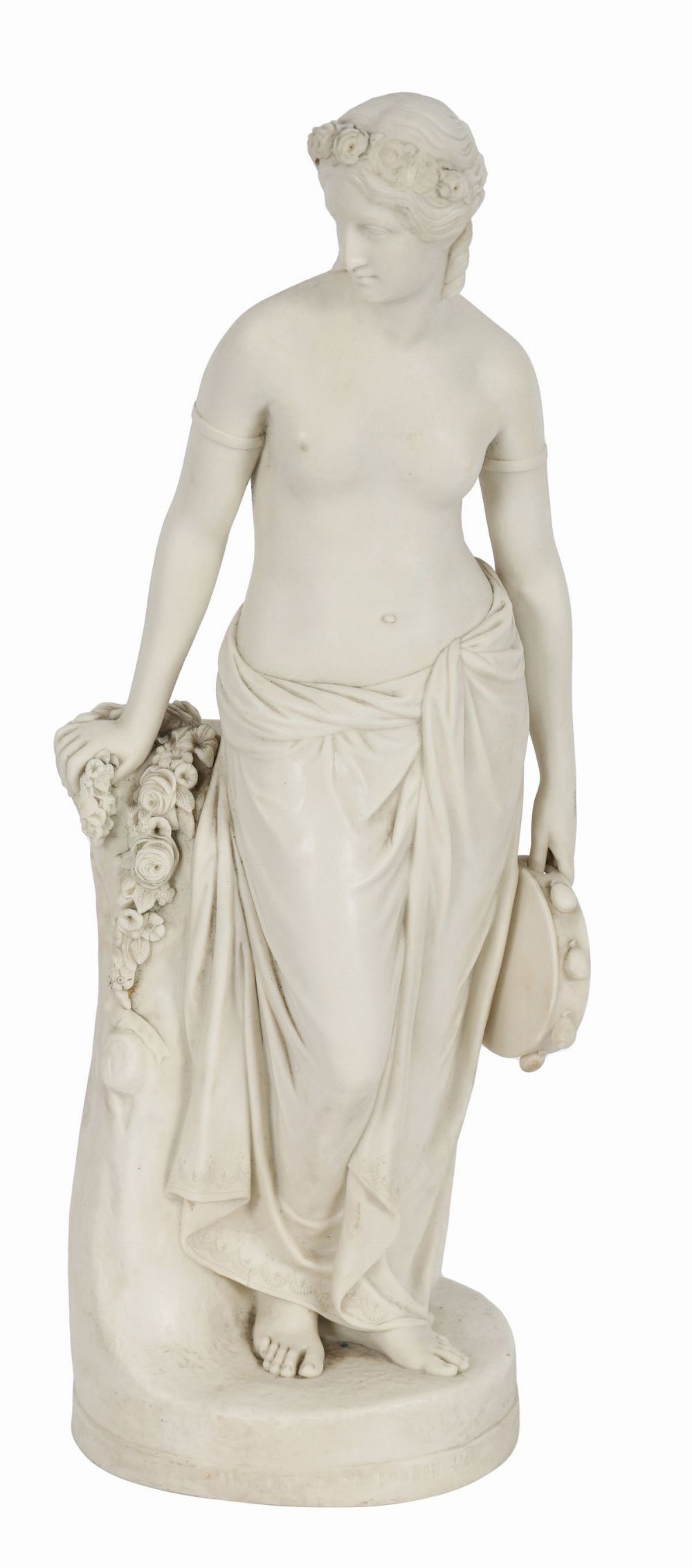 A Copeland Parian porcelain figure modelled as a classical female, standing beside floral garlands, the surface finished in a soft matt white glaze. English, 19th century.