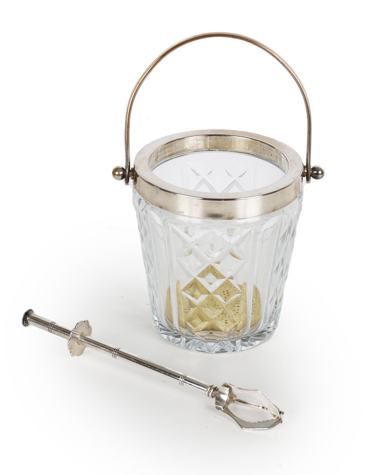 Lot 555 CRYSTAL AND SILVER-PLATED ICE BUCKET