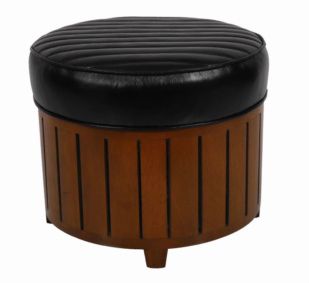 Lot 1139 DESIGNER LEATHER AND WOOD DRUM STOOL