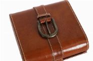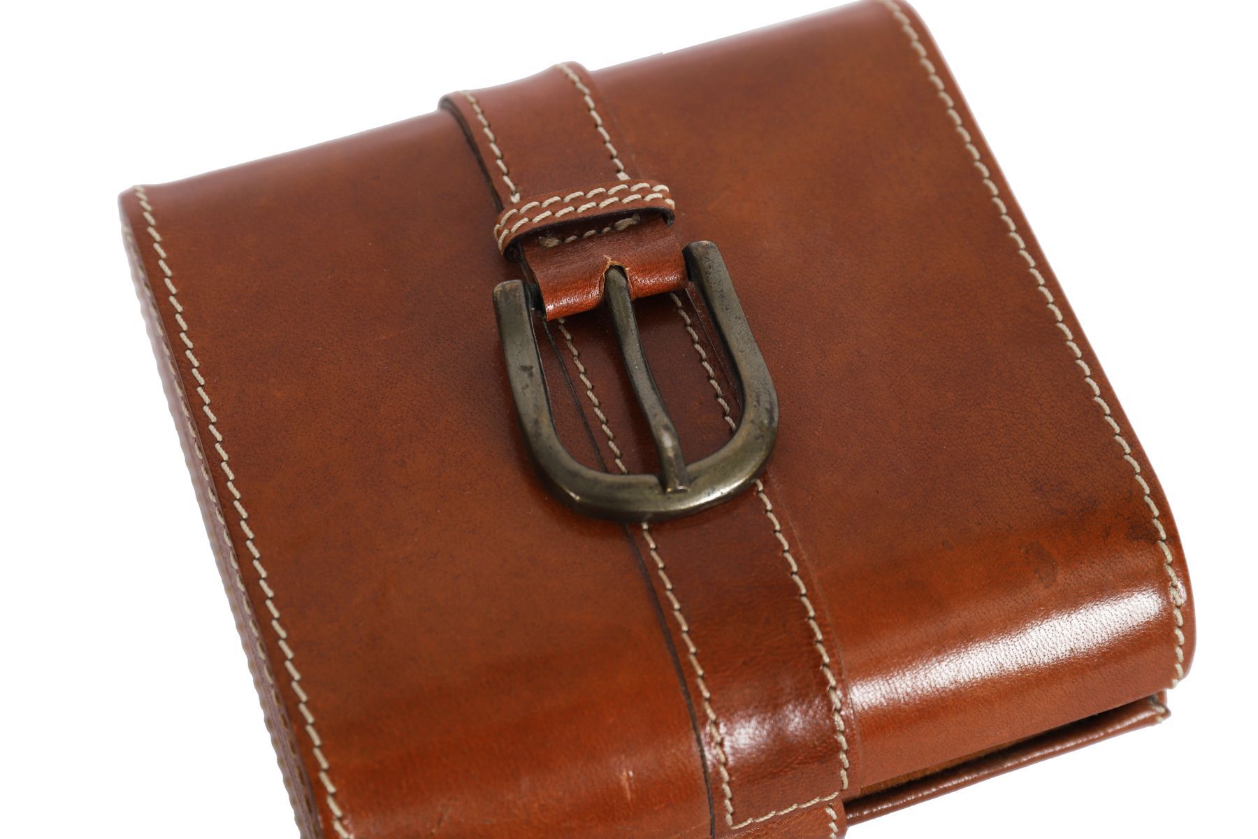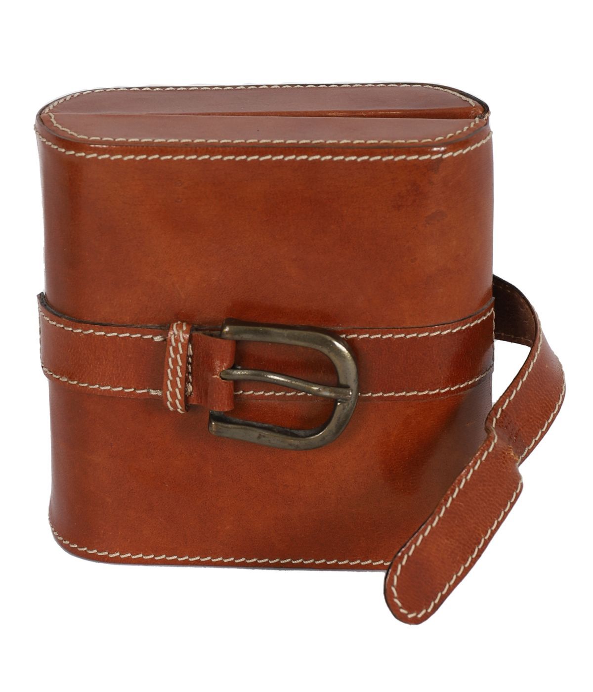 With stitched decoration and strap fastening.